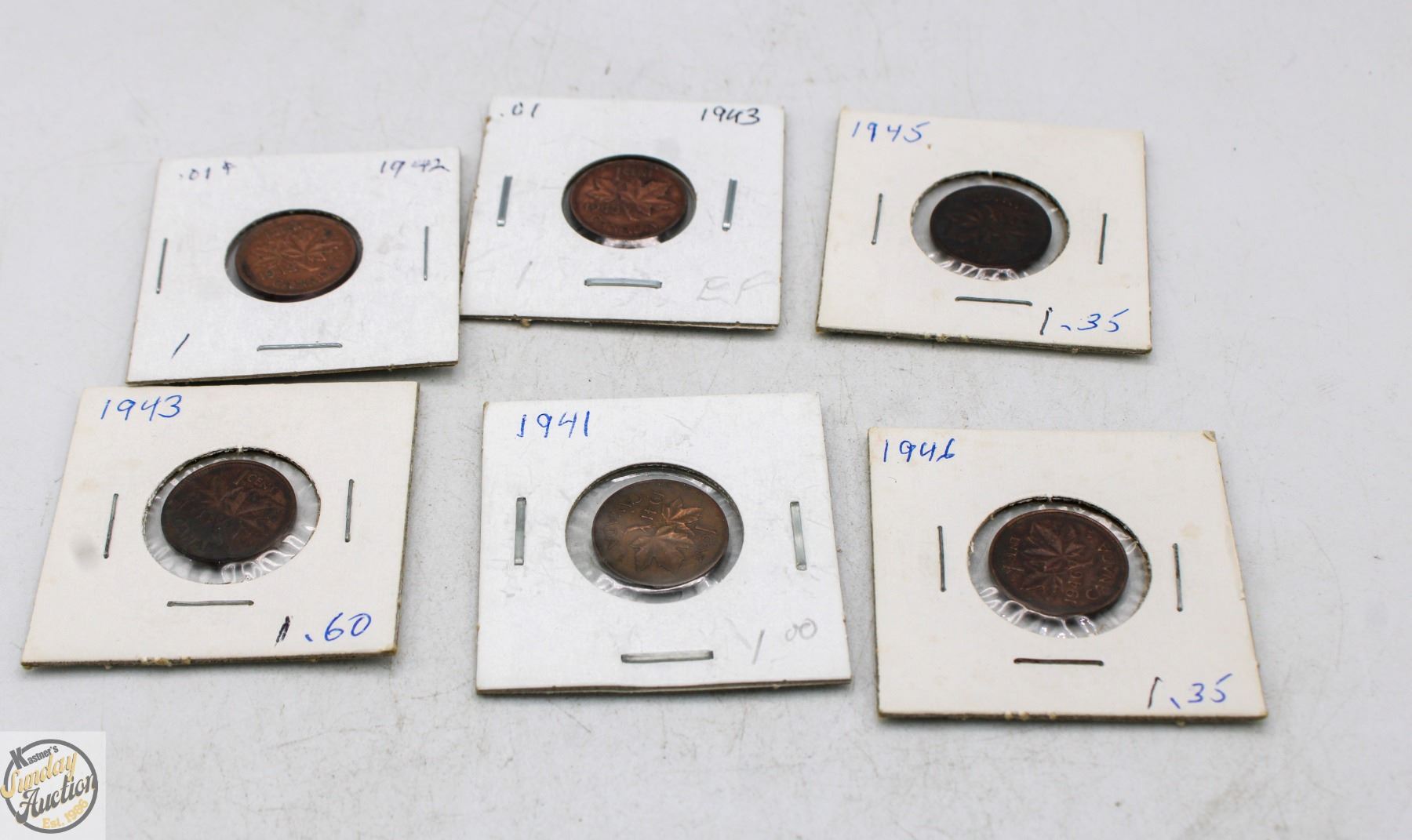 LOT OF 6 CANADIAN PENNIES 1941, 42, 43, 43, 45, 46