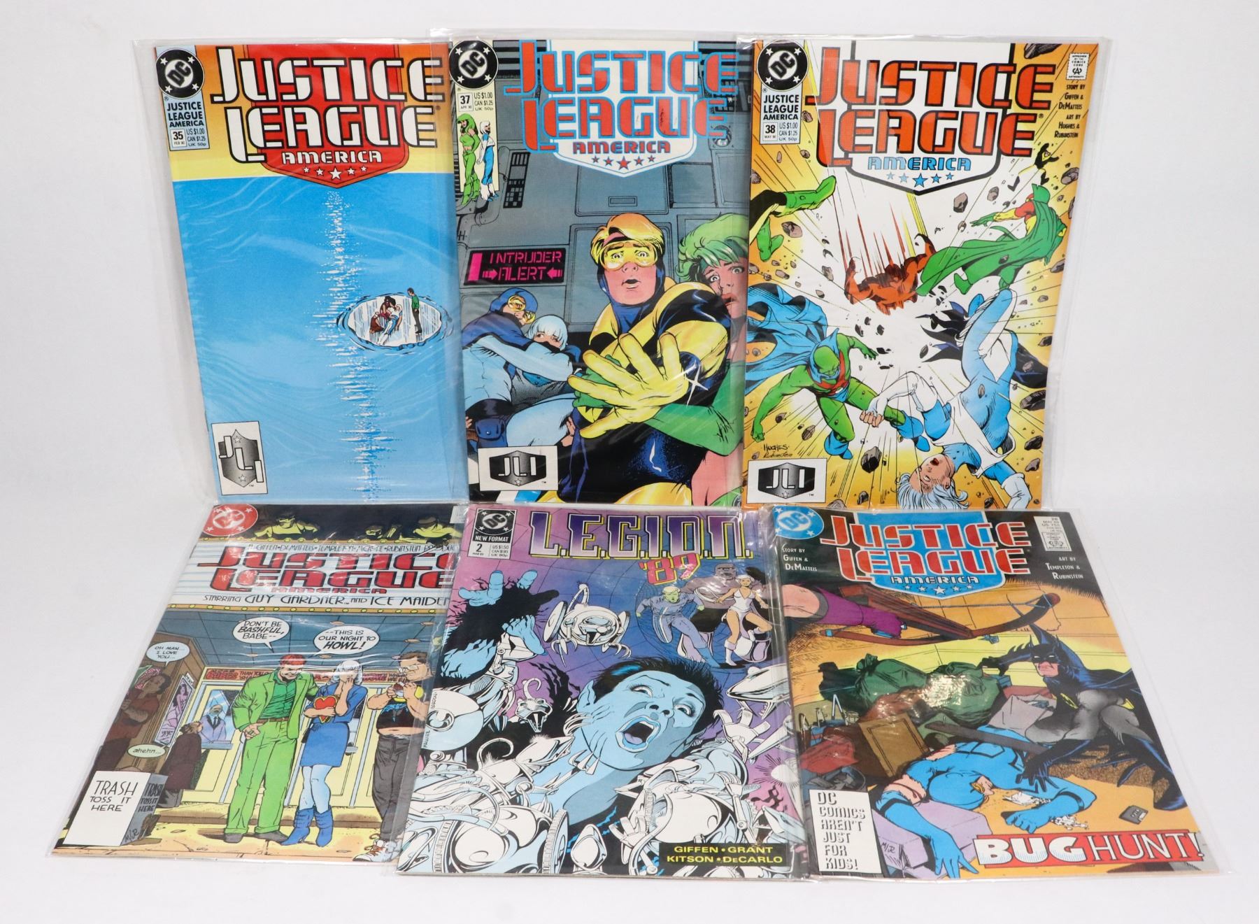 LEGION '89 #2 JUSTICE LEAGUE AMERICA #26, 28 JUSTICE LEAGUE AMERICA # 35, 37, 38***ITEM(S) LOCATED IN LETHBRIDGE ALBERTA. ALL ITEMS IN THIS AUCTION ARE ELIGIBLE FOR OUR FREE TRANSPORT TO EDMONTON OFFICE SERVICE. WORLDWIDE CANADA POST SHIPPING IS AVAILABLE