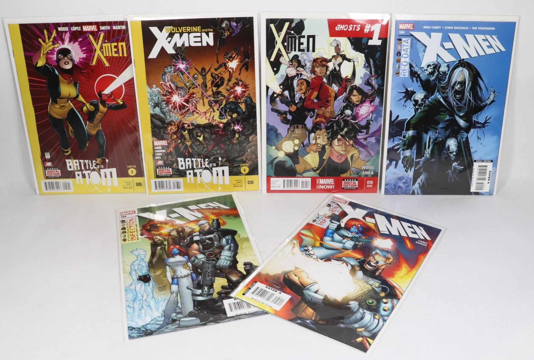X-MEN #194, 196, 199 X-MEN GHOSTS #1 WOLVERINE AND THE X-MEN BATTLE OF THE ATOM CHAPTER 3, 5***ITEM(S) LOCATED IN LETHBRIDGE ALBERTA. ALL ITEMS IN THIS AUCTION ARE ELIGIBLE FOR OUR FREE TRANSPORT TO EDMONTON OFFICE SERVICE. WORLDWIDE CANADA POST SHIPPING IS AVAILABLE
