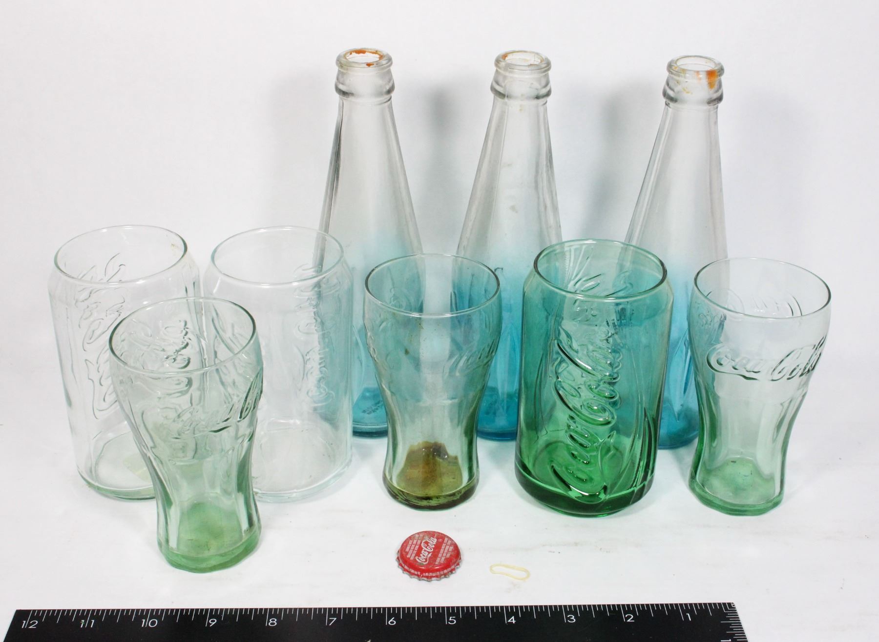 3 SMALL CUPS 3 CAN SHAPED CUPS AND 3 BOTTLES.