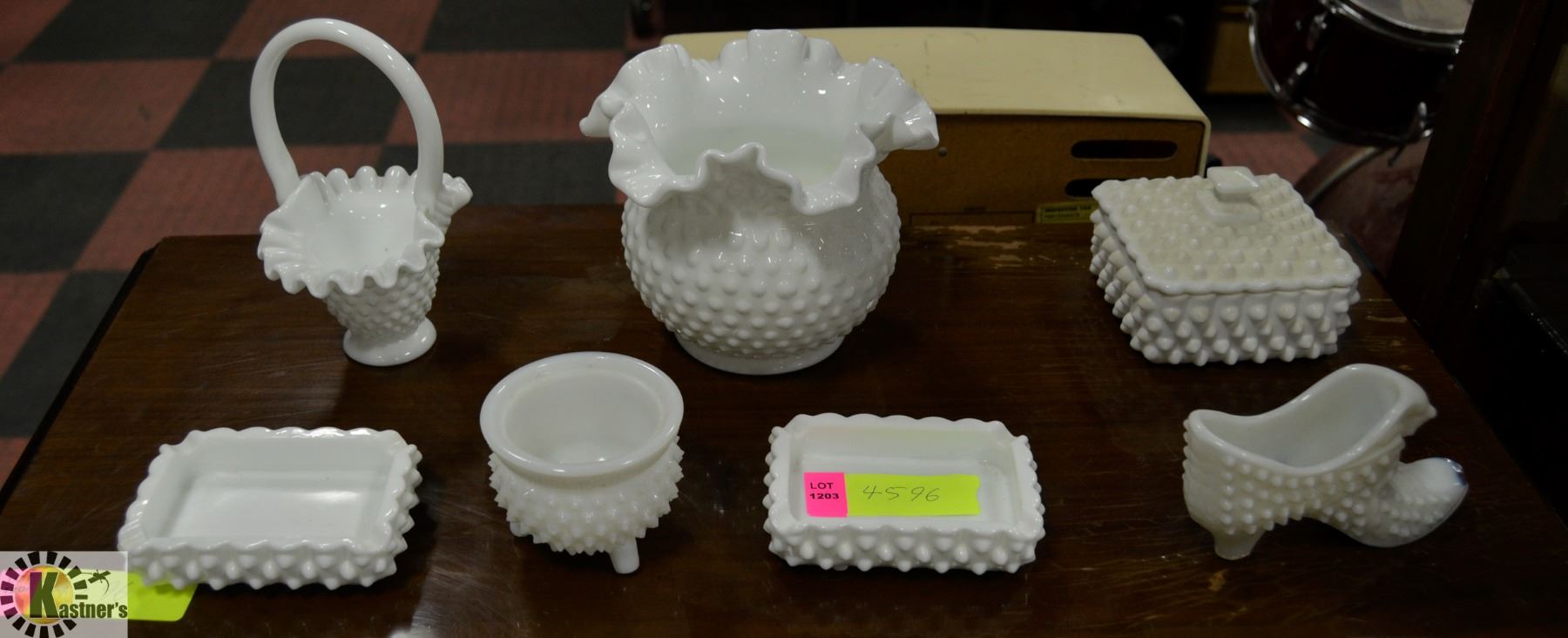 LOT OF HOBNAIL MILK GLASS ORNAMENTS