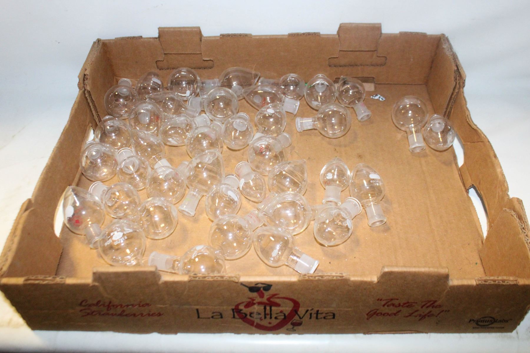 LOT OF ROUND BOTTOM BEAKERS 25/50ML