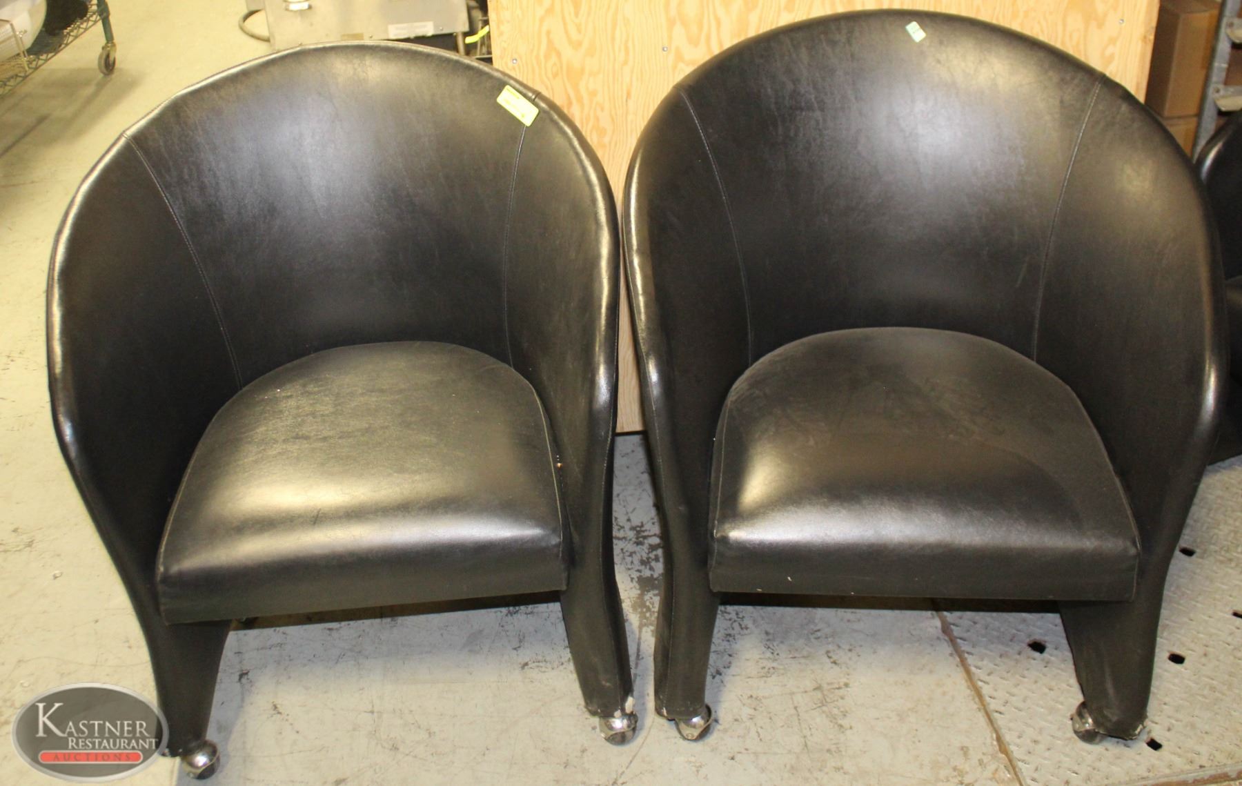 LOT OF TWO LEATHERETTE BUCKET CHAIRS ON CASTORS