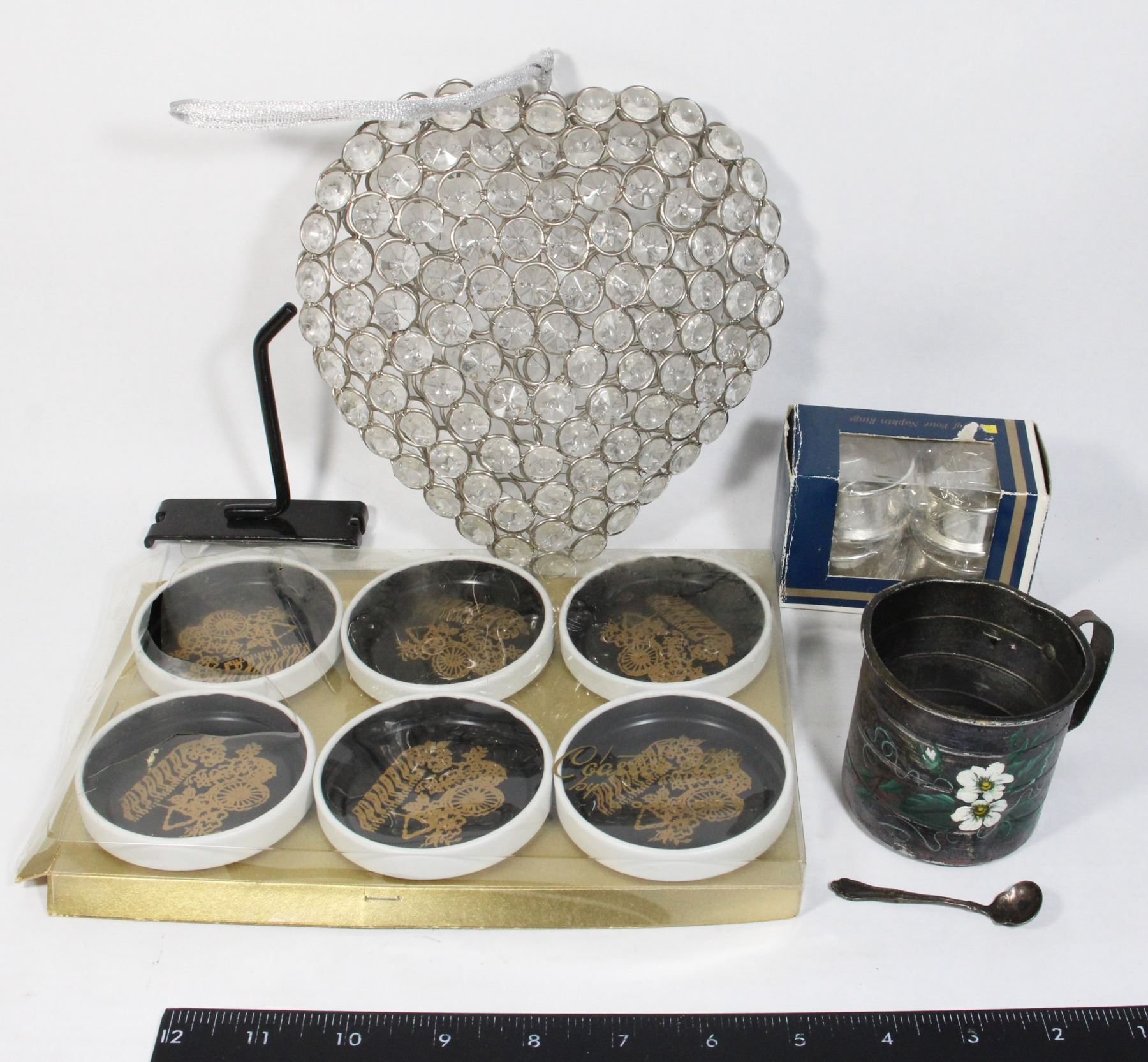 LOT OF VINTAGE COASTERS, NAPKIN RINGS, AND MORE