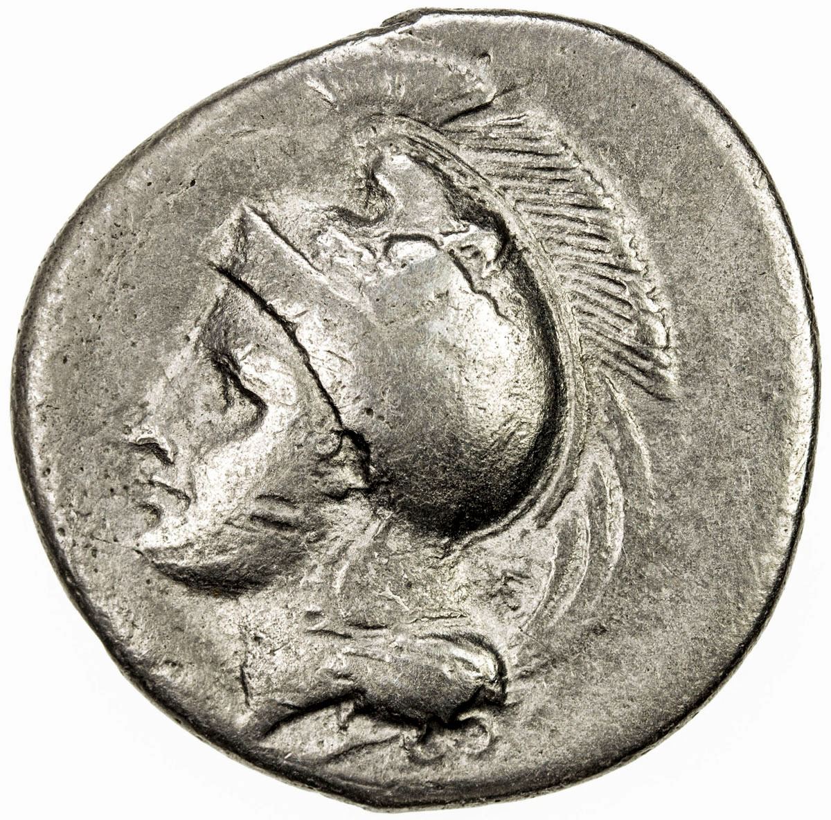 LUCANIA: Anonymous, ca. 334-300 BC, AR stater (7.05g), Velia, BMC-88, head of Athena left, wearing Phrygian helmet decorated with centauress // lion left, tearing at prey, YE?HTON below, VG-F.