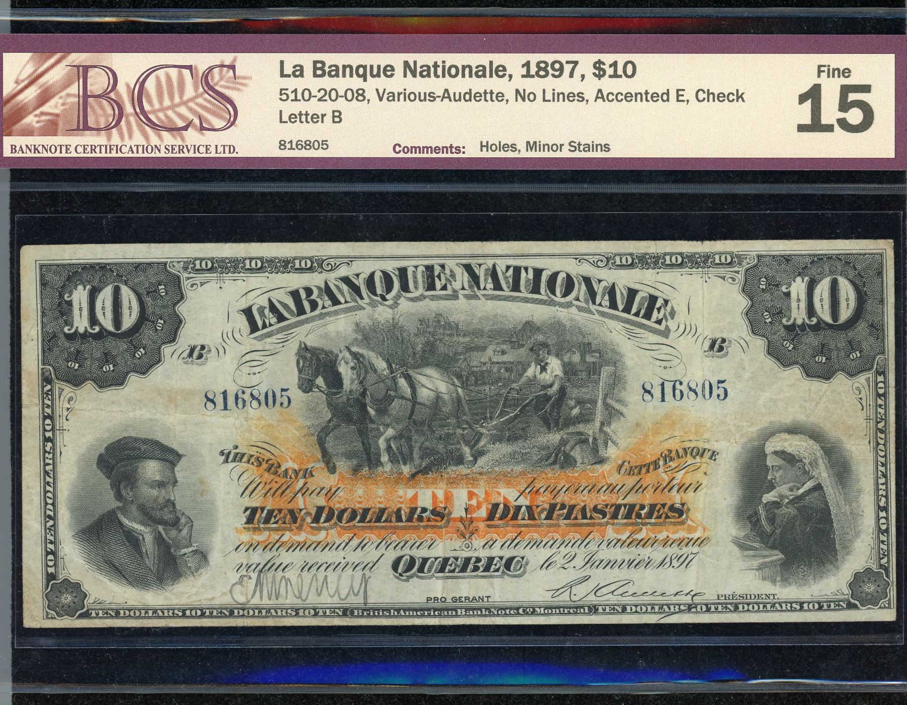 Ch.510-20-08, Audette Right, Accented E; BCS Fine-15, Holes, Minor Stains. S/N: 816805, and a handsome note
