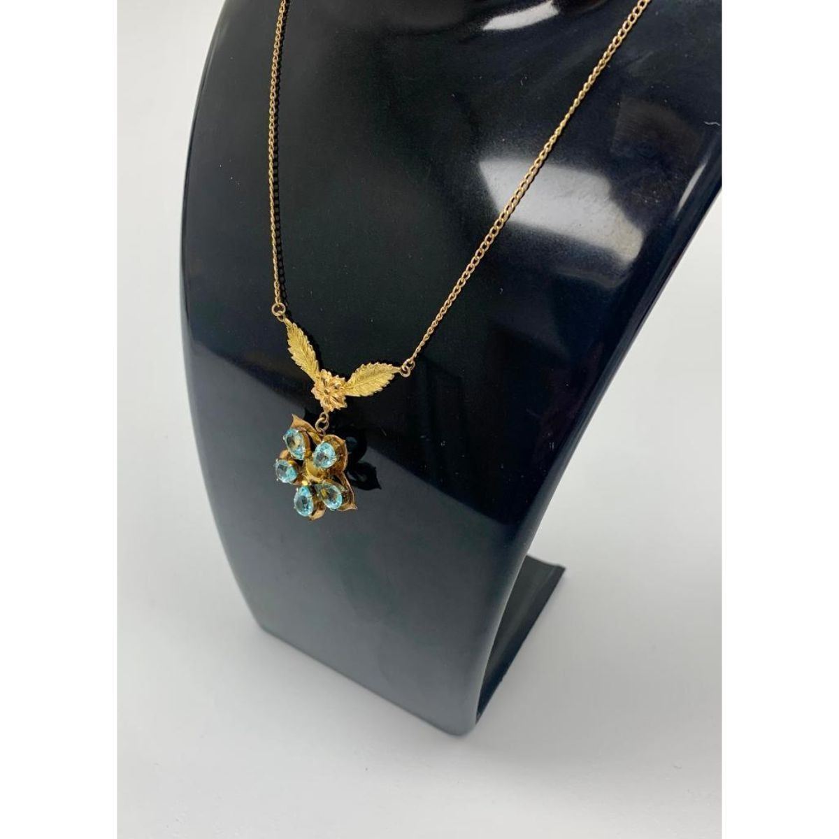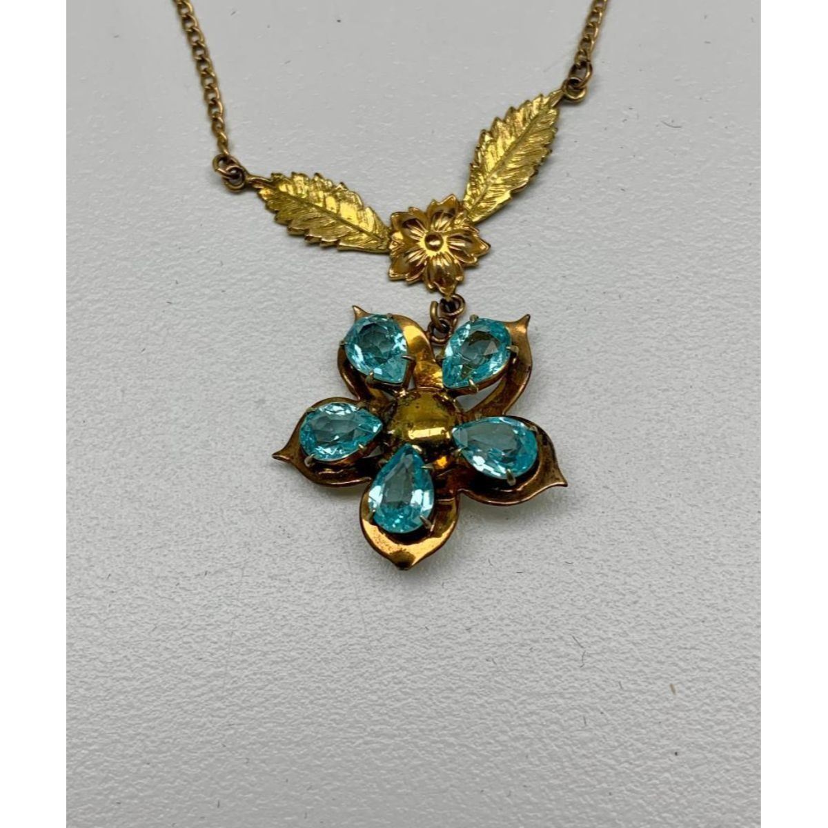 Ladies .34ct Tear Drop Cut Sky Blue Citrine & 10K Gold Plated Gold Flower Necklace