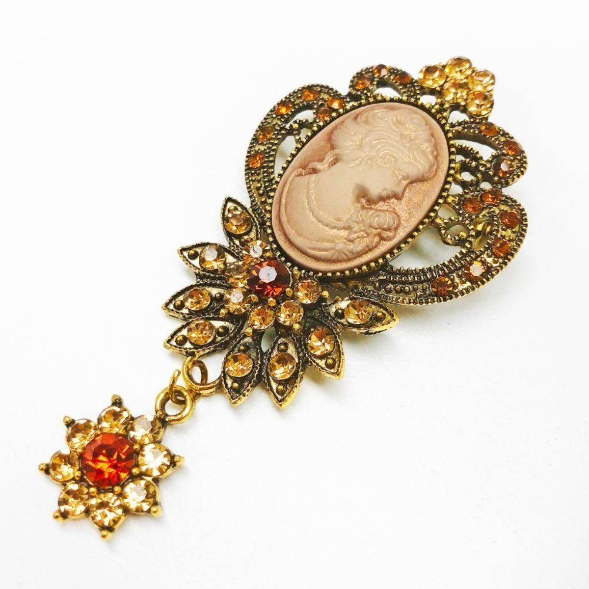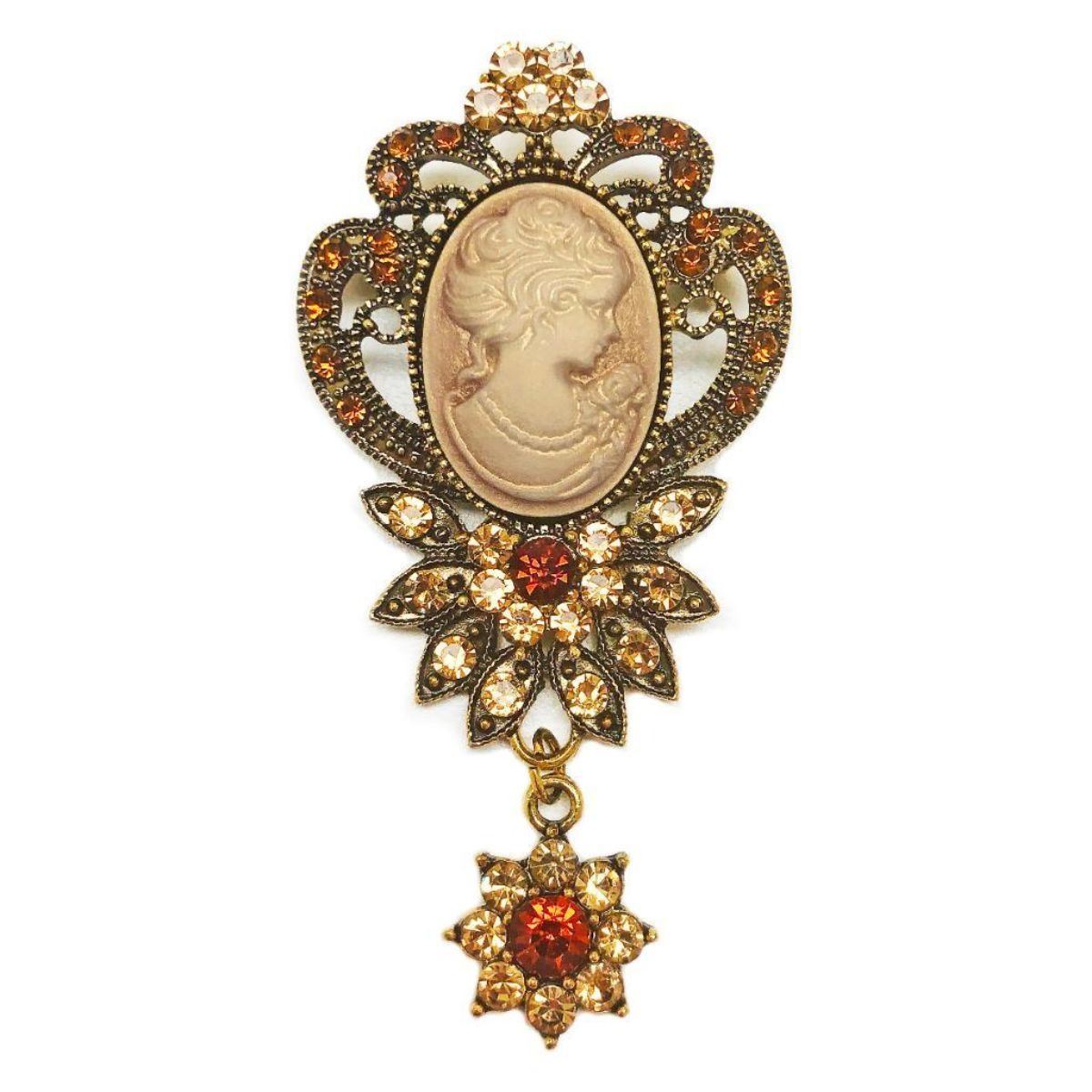 Ladies Bejewelled & Dangling Rhinestone Silhouetted Cameo Brooch