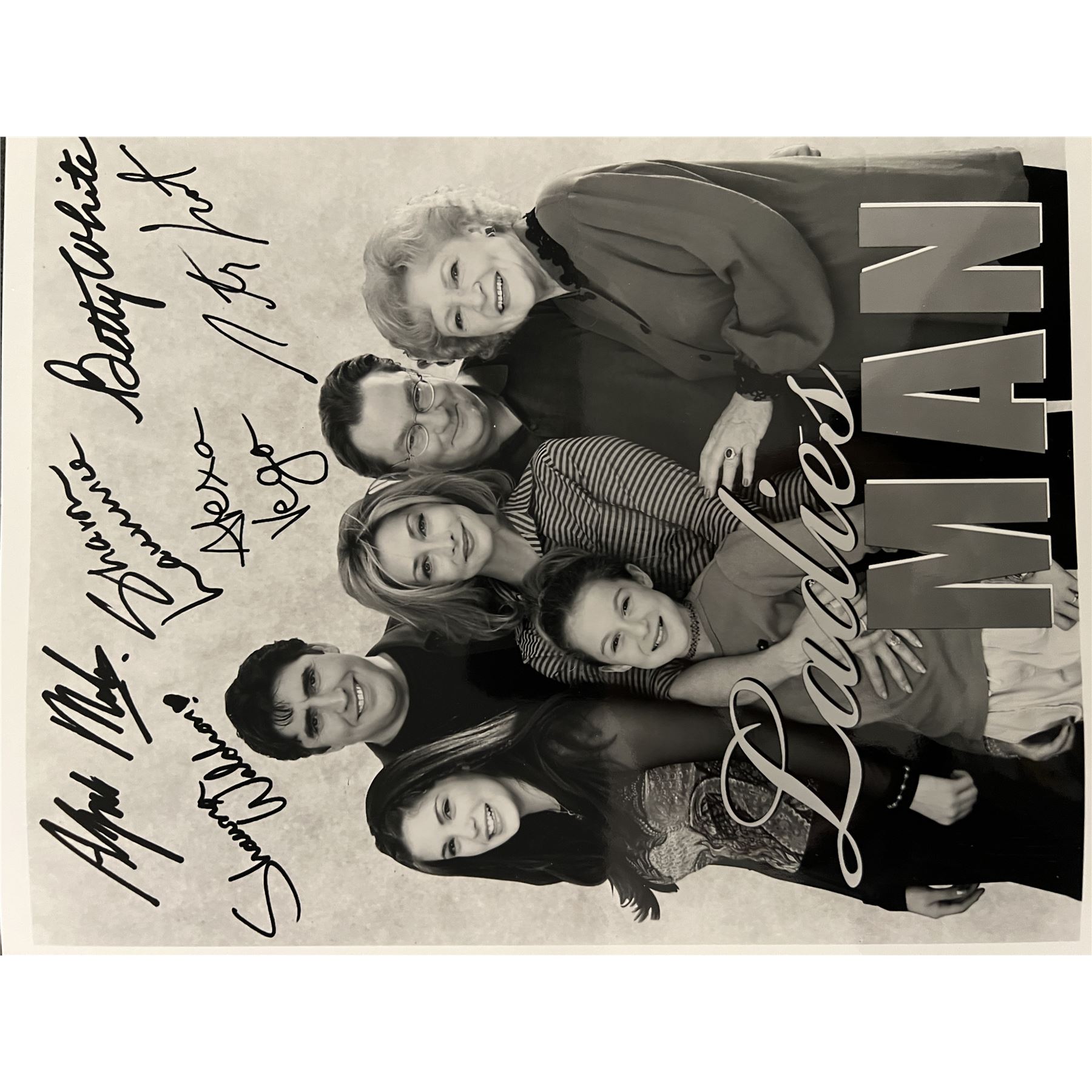 Ladies Man cast signed photo autographed by Alfred Molina, Sharon Lawrence, Betty White, Stephen Root, Alexa Vega, and Shawna Waldron. 8x10 inches