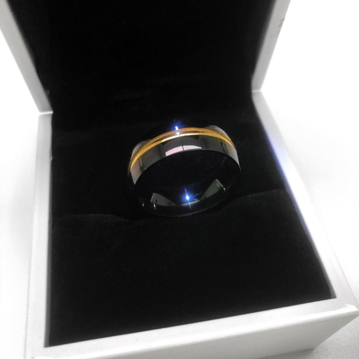 Ladies Titanium Black & Gold Engagement Ring, Brand New, Size 8. See Photos For Further Inspection.
