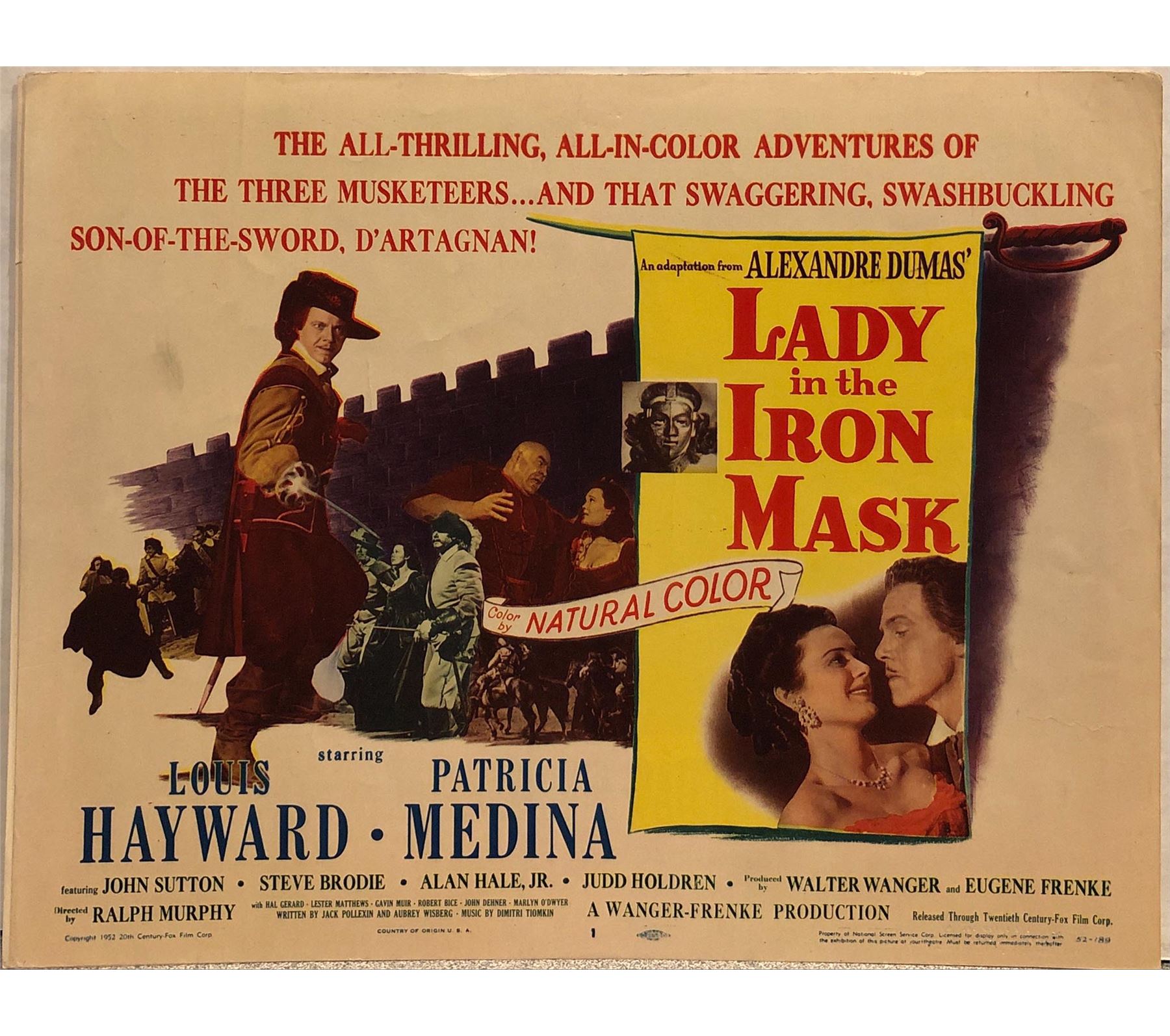 Lady in the Iron Mask Original 1952 Vintage Lobby Card on Heavy Card Stock. 11X14 Inches