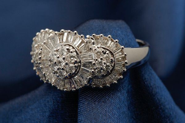 Lady's Diamond, 14k White Gold Floral Cluster Ring. Featuring baguette & round full-cut diamonds, weighing a total of approximately 1.50 carats, gross weight 4.00 grams, ring size 7.