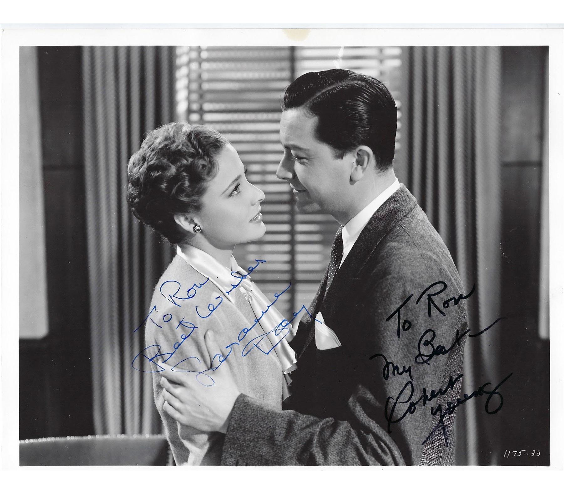 Laraine Day and Robert Young signed movie photo. 8x10 inches