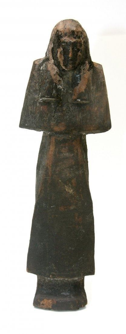Large Ancient Egyptian Rameses period overseer Wood Ushabti c.1050 BC. Size 8 inches high.. with embalming bitumen still on face. Ex. Julian Bird collection London, UK acquired between 1970-2012.