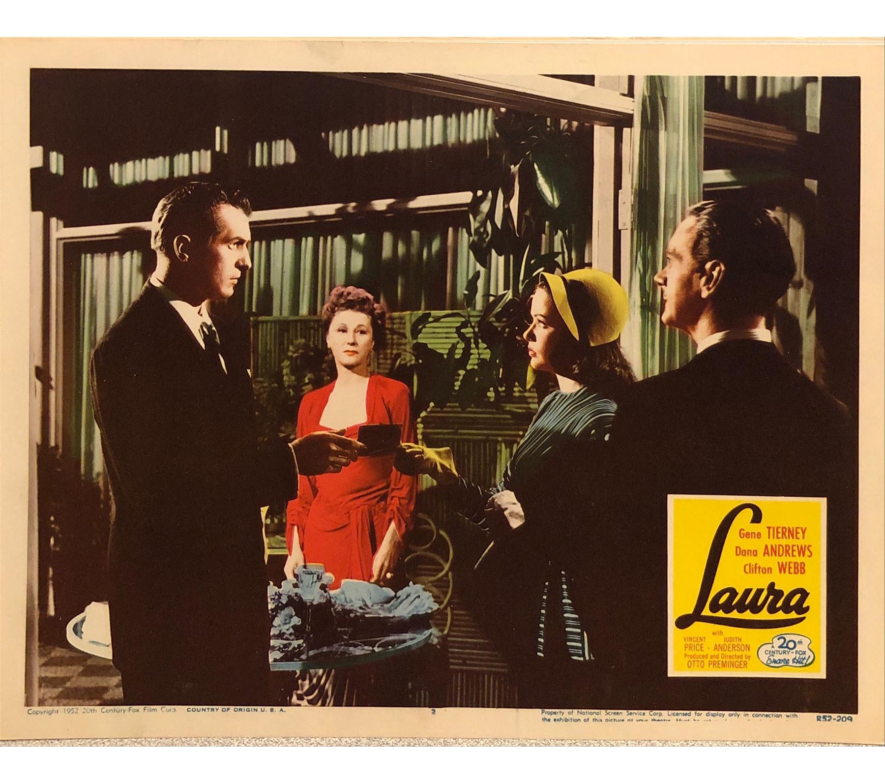 Laura Original 1952R Vintage Lobby Card on Heavy Card Stock. 11X14 Inches