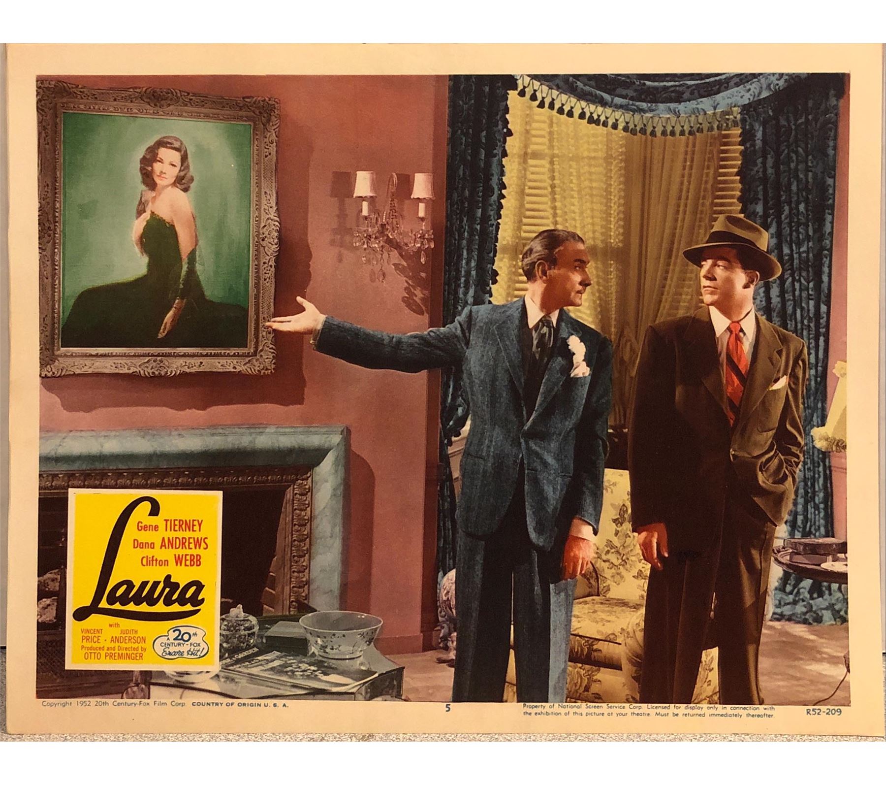 Laura Original 1952R Vintage Lobby Card on Heavy Card Stock. 11X14 Inches