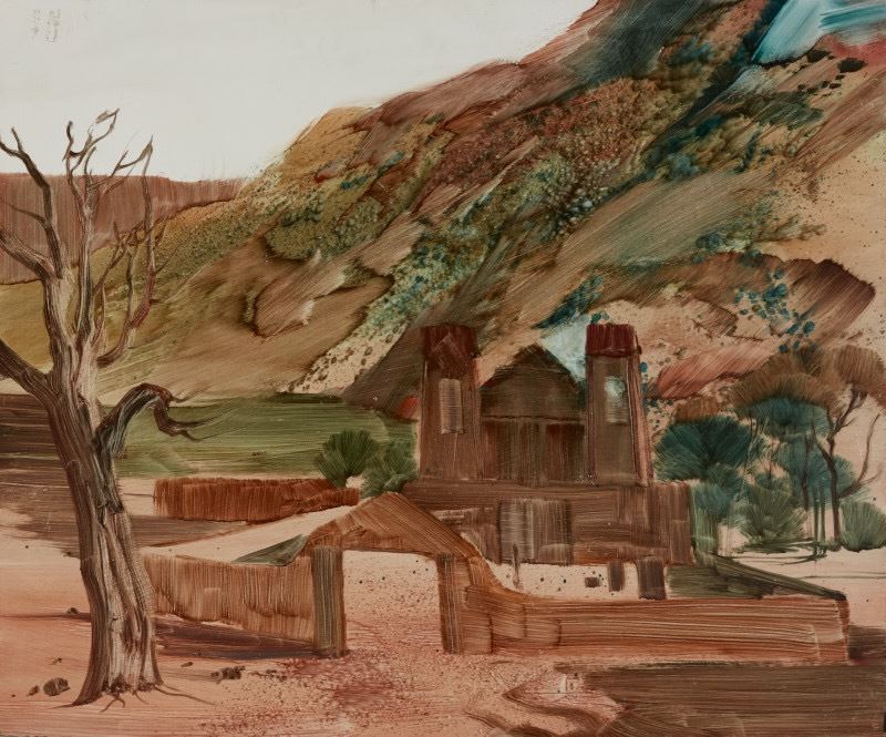 To the unaided eye, the piece looks to be in good condition. There are some scratches in the pigments, one in the center approximately 6 inches down and about 2 ½ inches in length, one in the left 1/3 about 7 inches down from the top and one located in the lower right about 7 inches from the bottom edge, approximately 2 inches in length. There are two scuffed areas, one in the upper left about 1 inch by 1 inch and another located in the lower left, again approximately 1 inch by 1 inch. Inspection under ultraviolet light reveals nothing of issue and no signs of restoration. The work is unframed. Verso: Two labels from cataloging: 261. #7 L5000 Oil on Masonite 24" x 20" and 76. 261 L5000 Oil on Masonite 24" x 20" Unsigned.