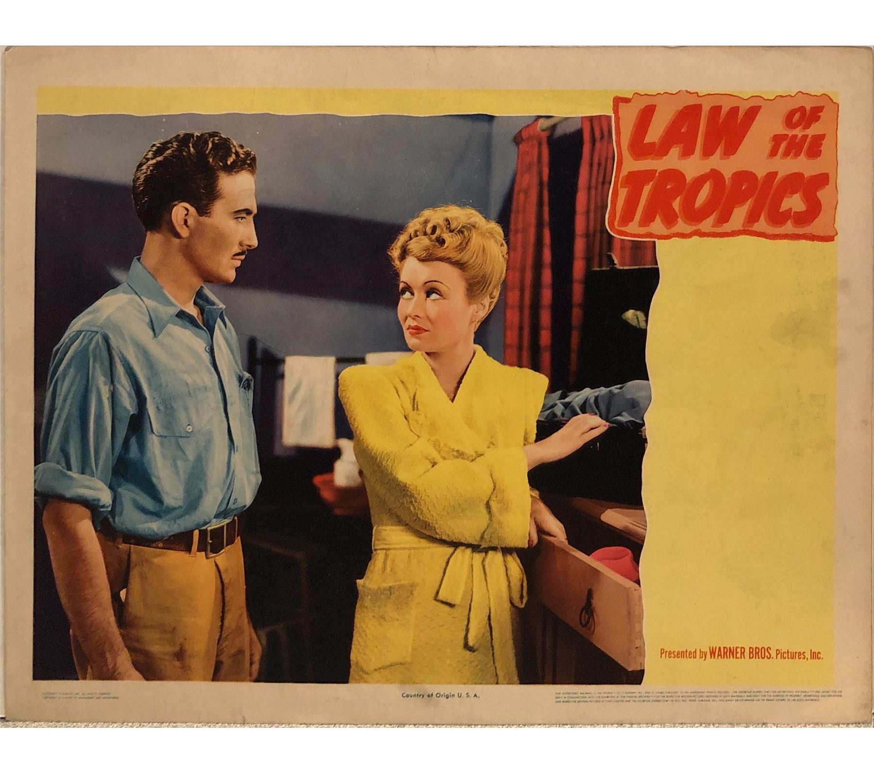 Law of the Tropics Original 1941 Vintage Lobby Card on Heavy Card Stock. 11X14 Inches