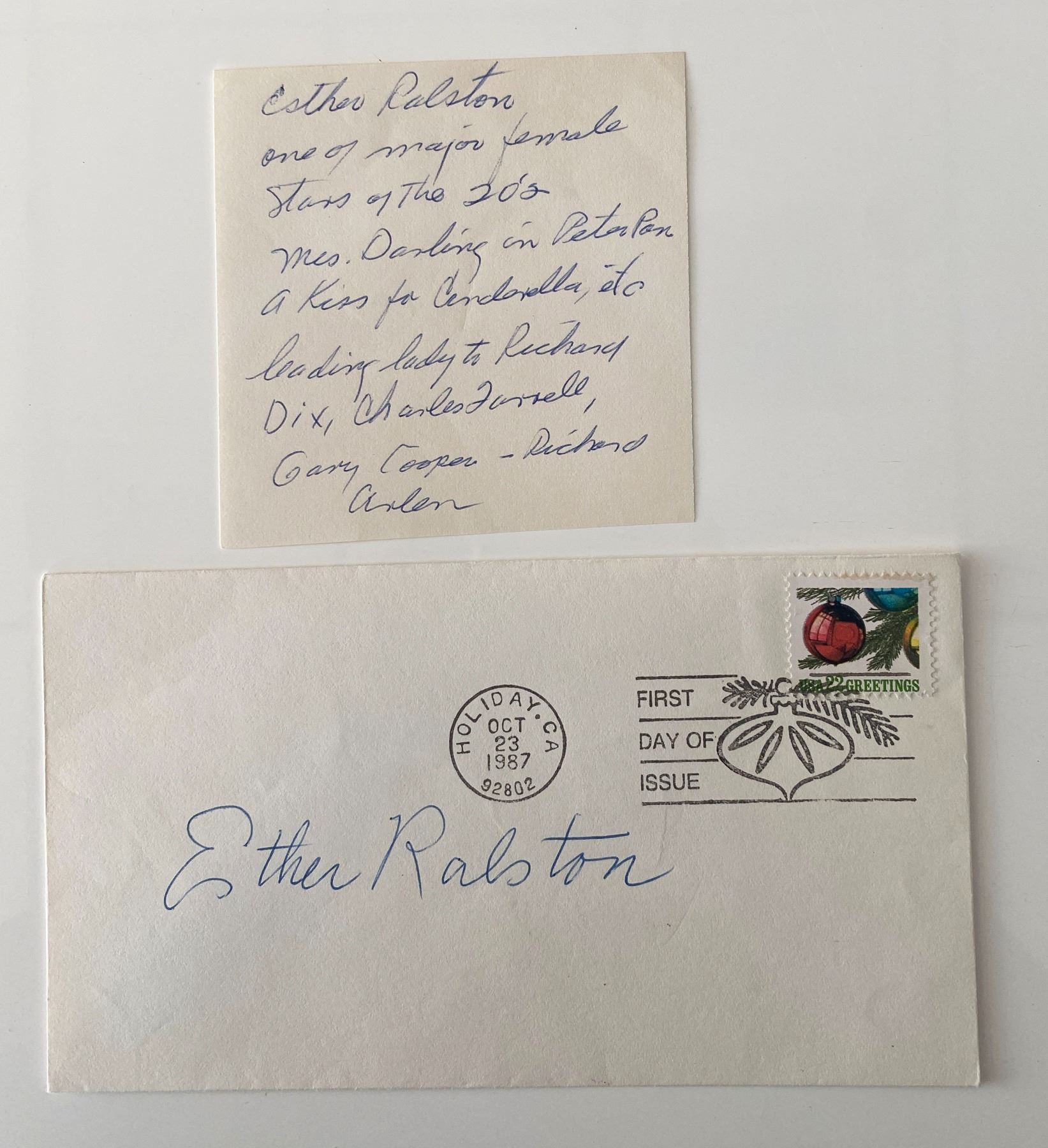 Leading Lady Esther Ralston signed cover - Oct 23 1987, Holiday, CA.7x4 inches