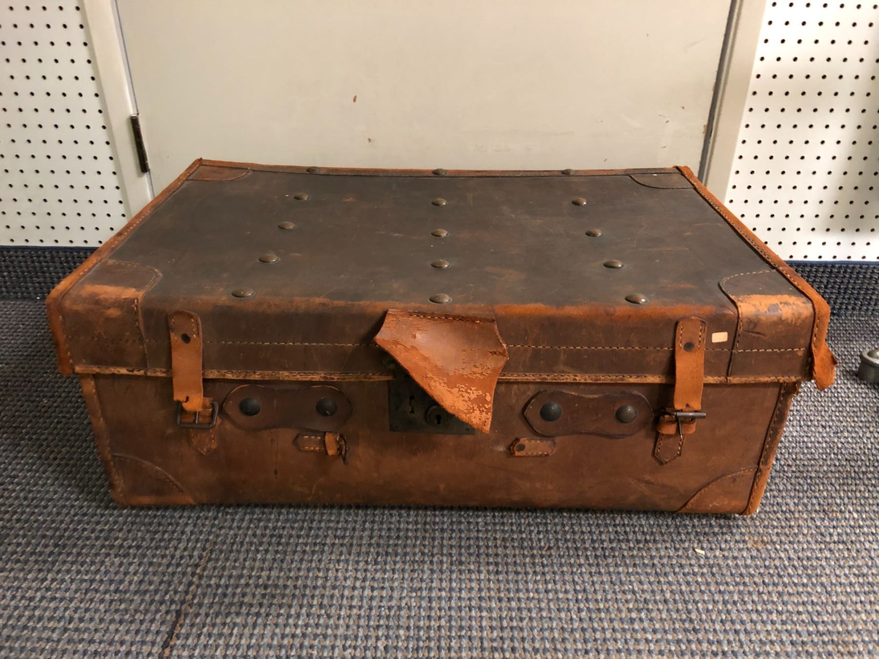 Leather Steamer Trunk - approx. 30in x 19in x 12in