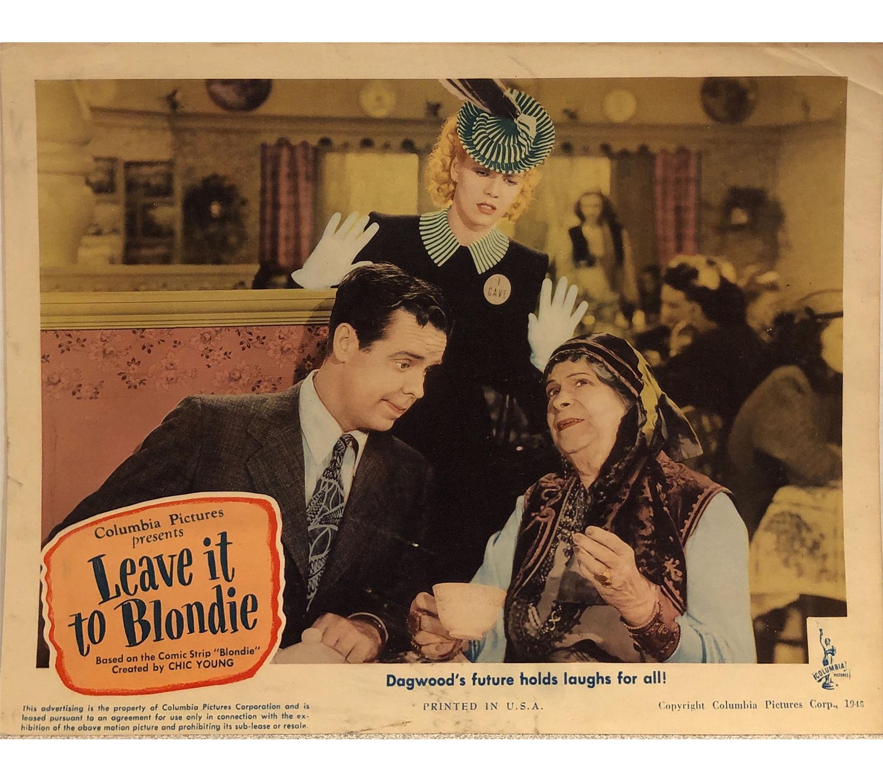 Leave it to Blondie Original 1945 Vintage Lobby Card on Heavy Card Stock. 11X14 Inches