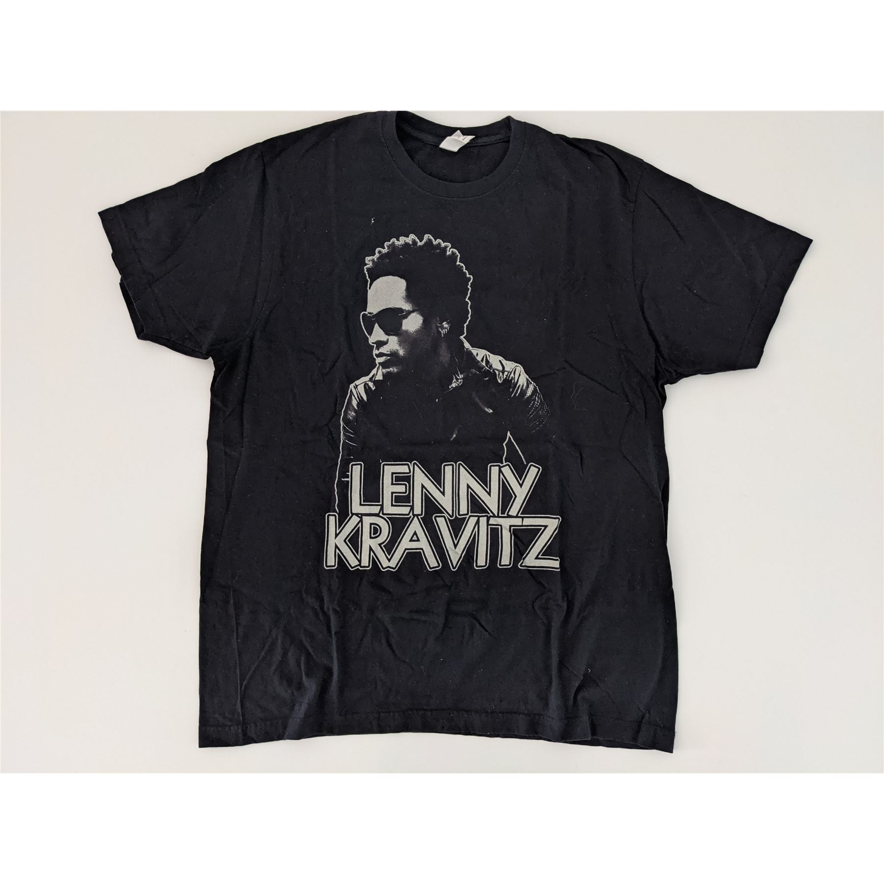 Lenny Kravitz 2008 Love Revolution US Tour Shirt Size XL. 100% cotton black short sleeved t-shirt. Original official tour merchandise. On the front in gray is a picture of Lenny, below says “Lenny Kravitz”. On the back in off white is “It Is Time For A Love Revolution”. In gray are the cities on the tour and “2008”. Excellent vintage condition, never worn. Approximate measurements are 24 inches (61 cm) pit to pit, 30 inches (76 cm) long shoulder to hem, 25 inches (63.5 cm) across bottom.