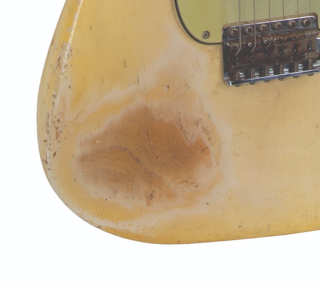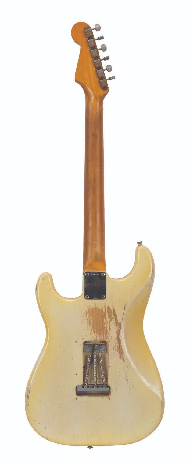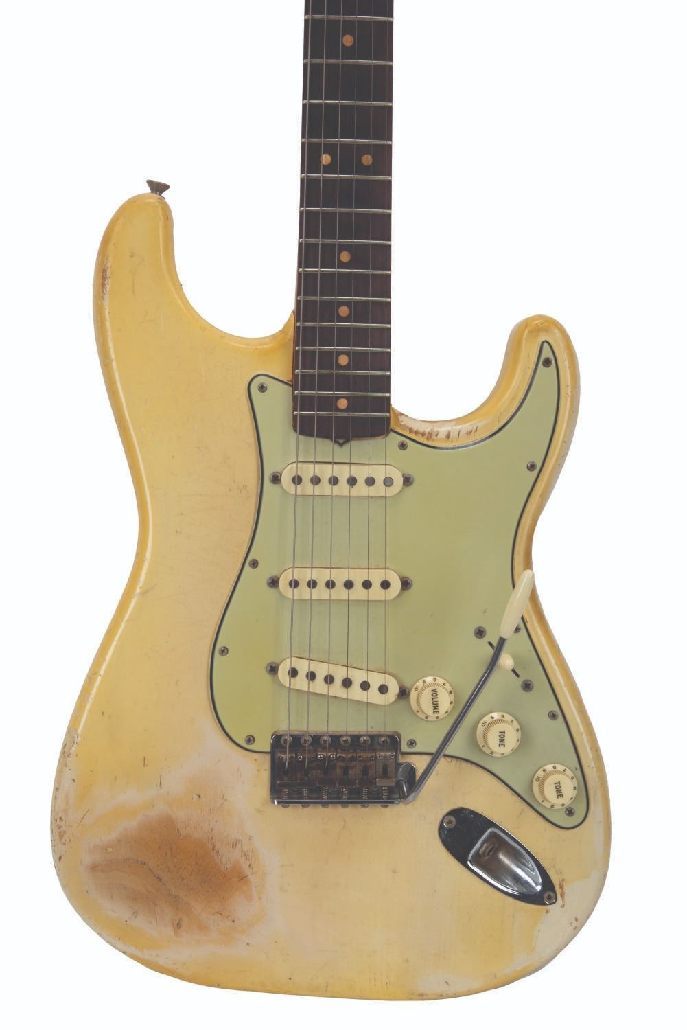 (Fender, 1963) Leon Russell’s 1963 Fender Stratocaster. A talented songwriter and musician, Russell played with countless legends over his 60-year career including Bob Dylan, Frank Sinatra, Elton John, Eric Clapton, and the Beach Boys. This ’63 Strat six-string electric guitar from the two-time Grammy winner bears the serial number L07046. Measuring 38.5” x 13” x 3” in a 41.5” x 15” x 4.5” guitar case, the guitar is in fair condition with scuffs, stains, wear from use, and heavy discoloration from age.
