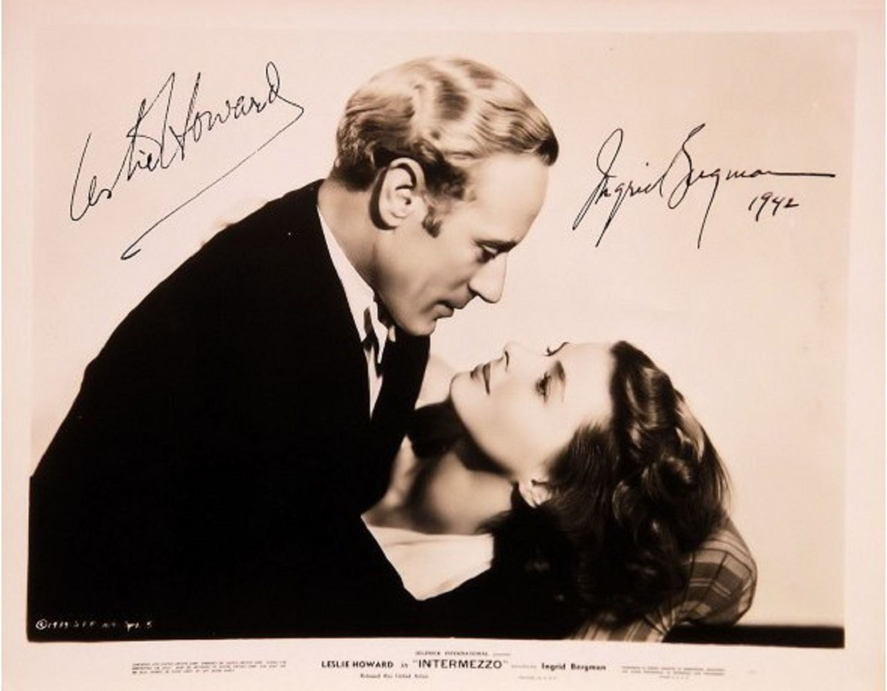 8 in. by 10 in. 1939 Black and white promo photo from "Intermezzo" autographed by Leslie Howard and Ingrid Bergman.
