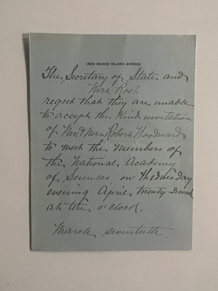 Letter from the office of U.S. Secretary of State Elihu Root. 5x7 inches