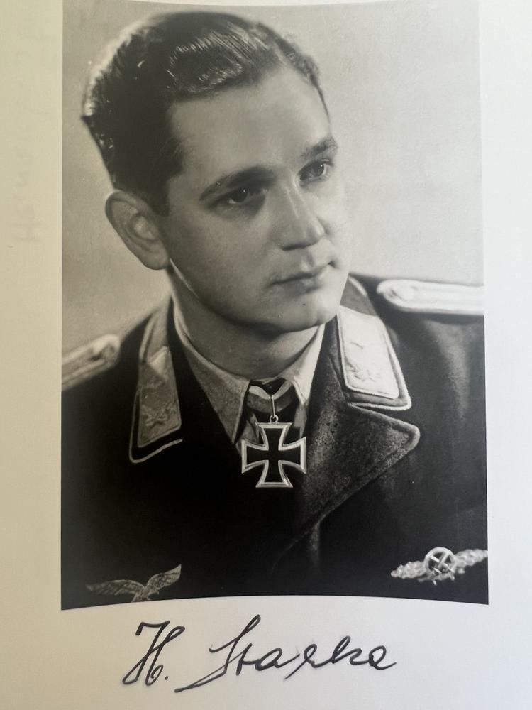 Leutnant Heinrich Starke signed photo. 3x5 inches