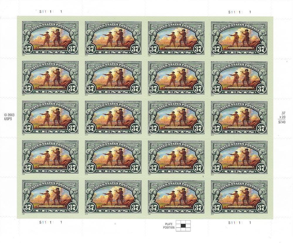 2004 Lewis and Clark Bicentennial Sheet of Twenty 37¢ Stamps Scott # 3854