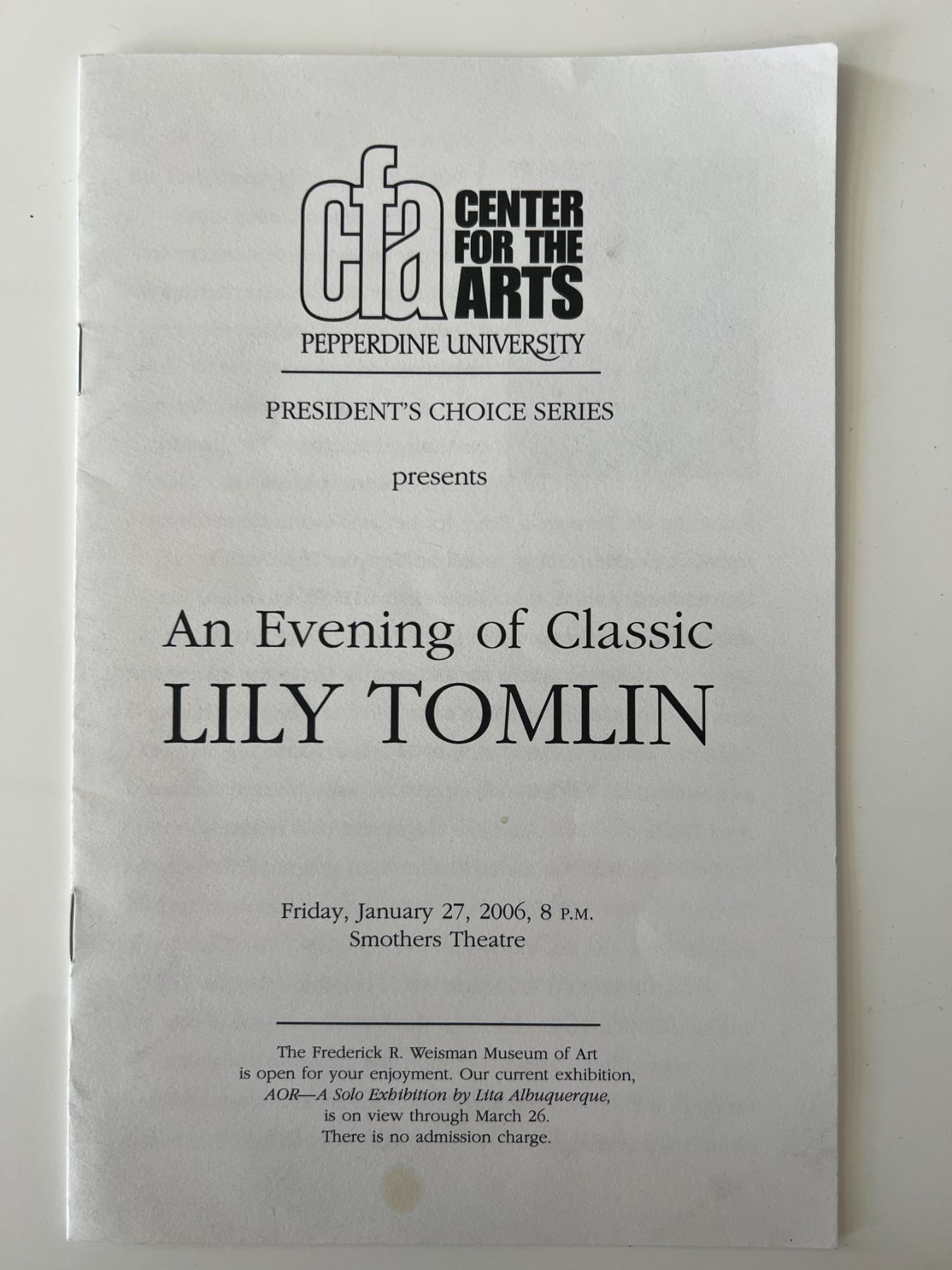 Lily Tomlin Center for the Arts program-Jan 27, 2006- 6x9 inches