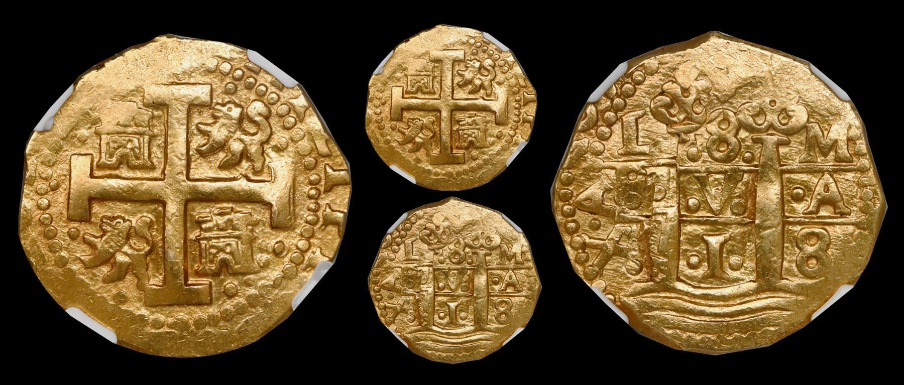 Lima, Peru, cob 8 escudos, 1718M, NGC AU 58, finest known in NGC census.