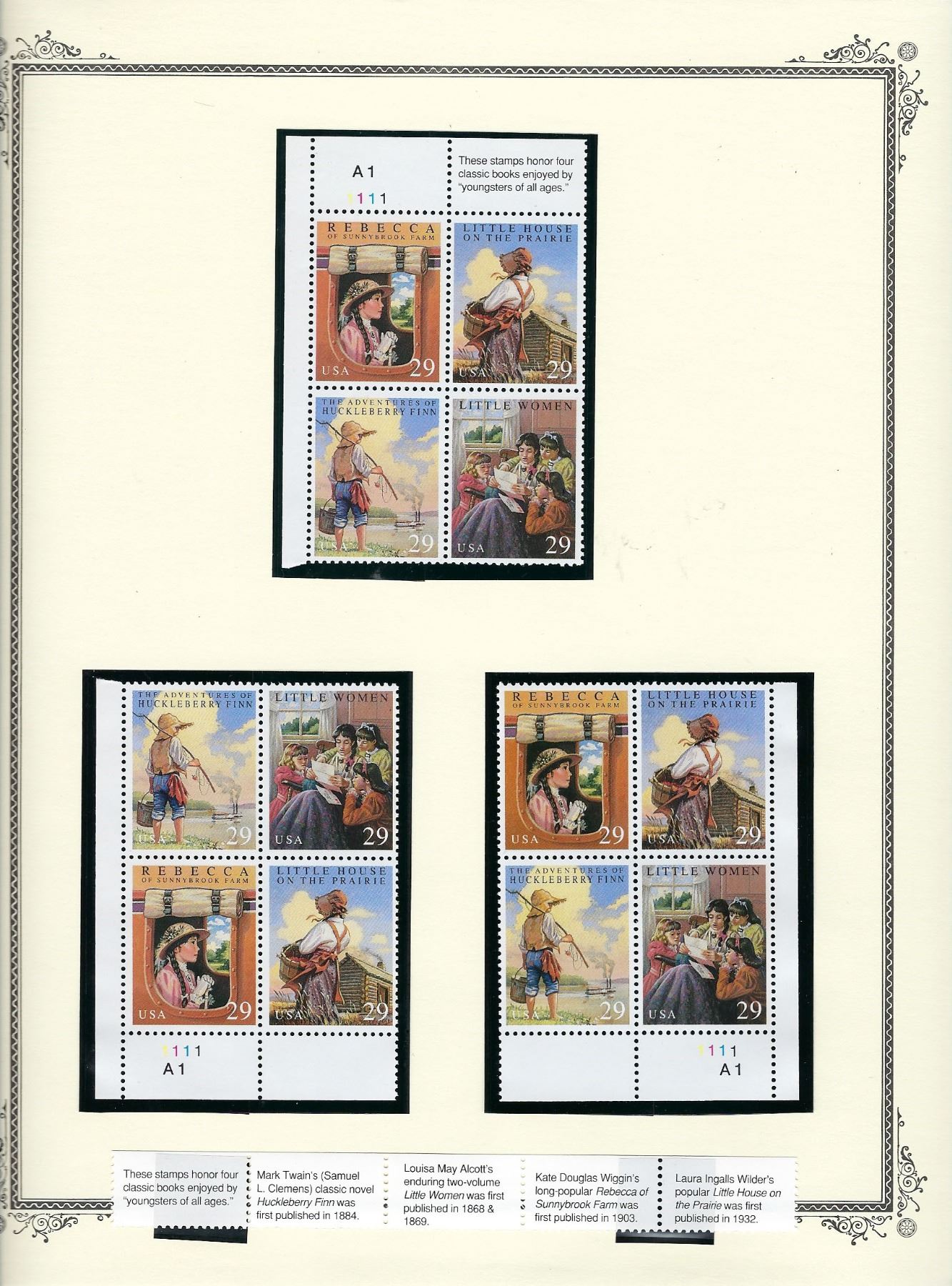Little Women stamps 3 plate blocks 12 x 29 cent stamps