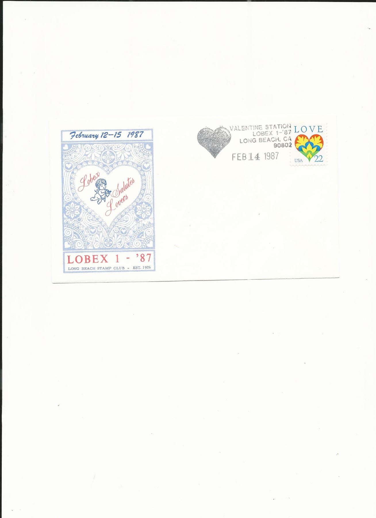 Lobex Salutes Lovers - Long Beach Stamp Club - First Day Cover - 1987 - Long Beach, CA