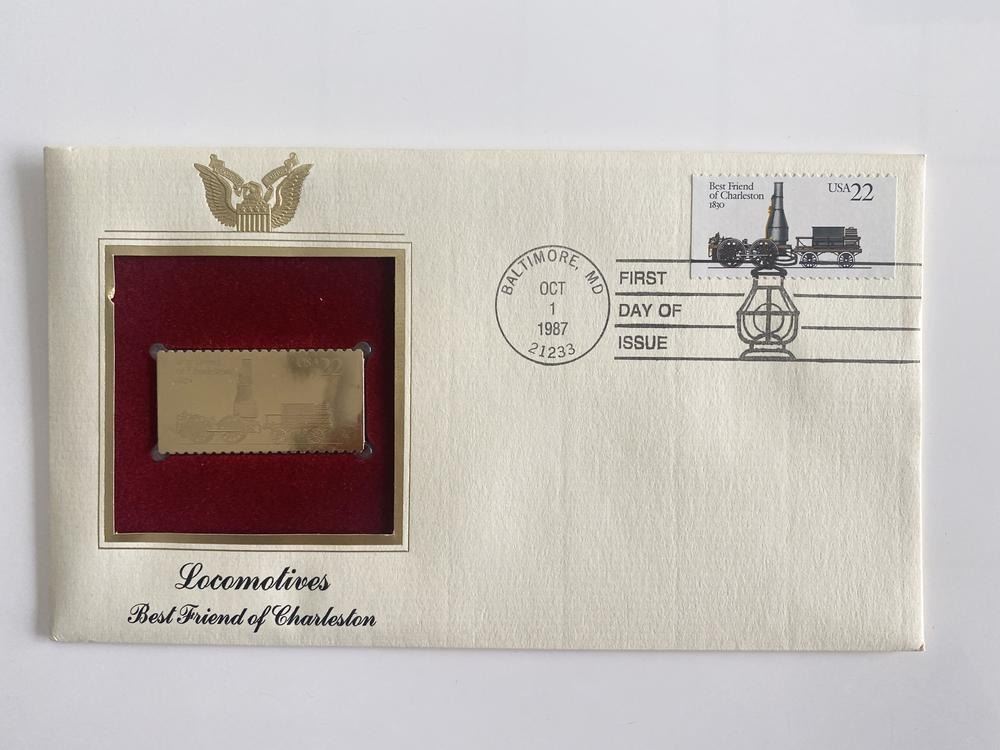 Locomotives Best Friend of Charleston Gold Stamp Replica First Day Cover. Baltimore, M.D. Oct 1st 1987. 4x8 inches