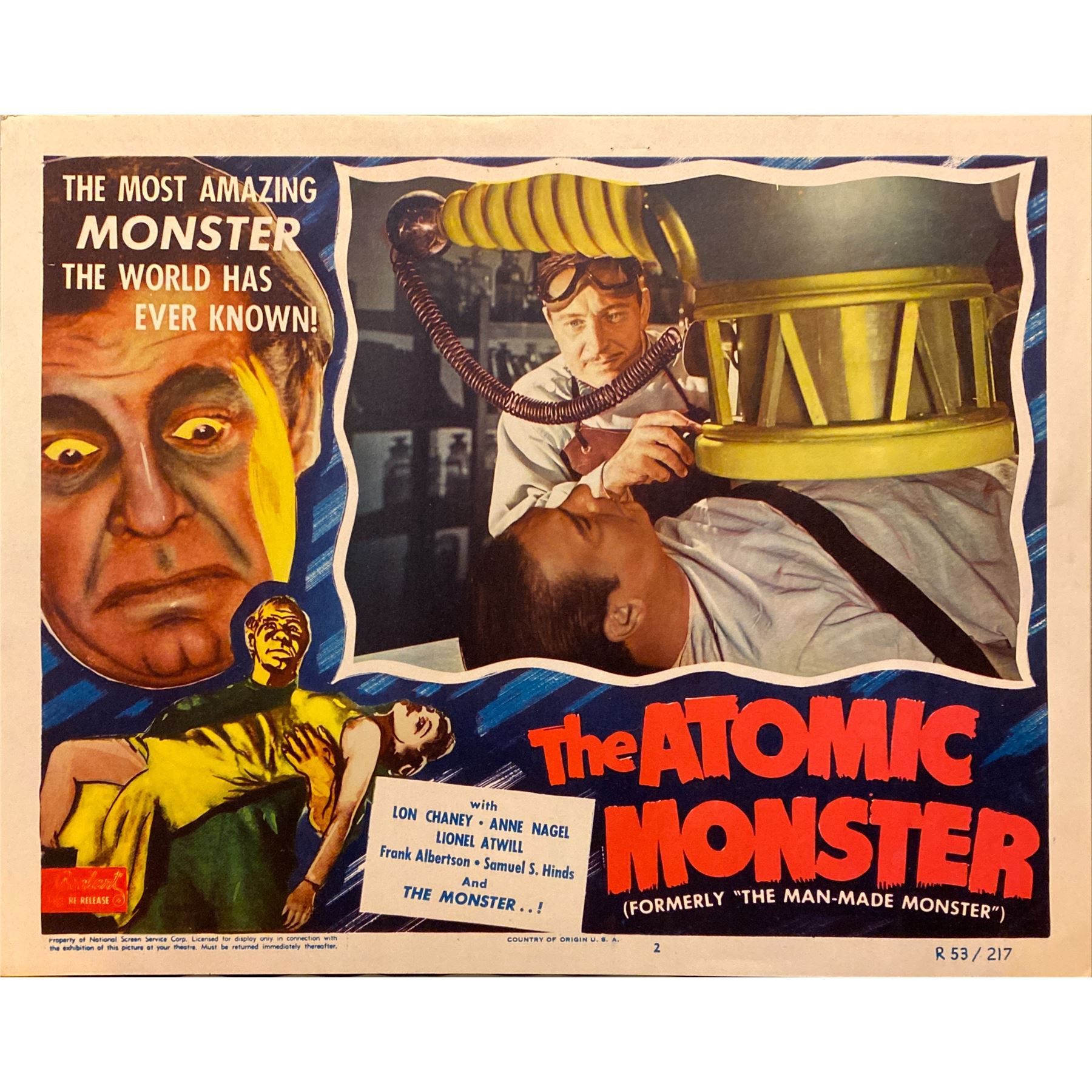 The Atomic Monster 1953 original lobby card featuring Lon Chaney, Jr. and Lionel Atwill. 11x14 Inches.