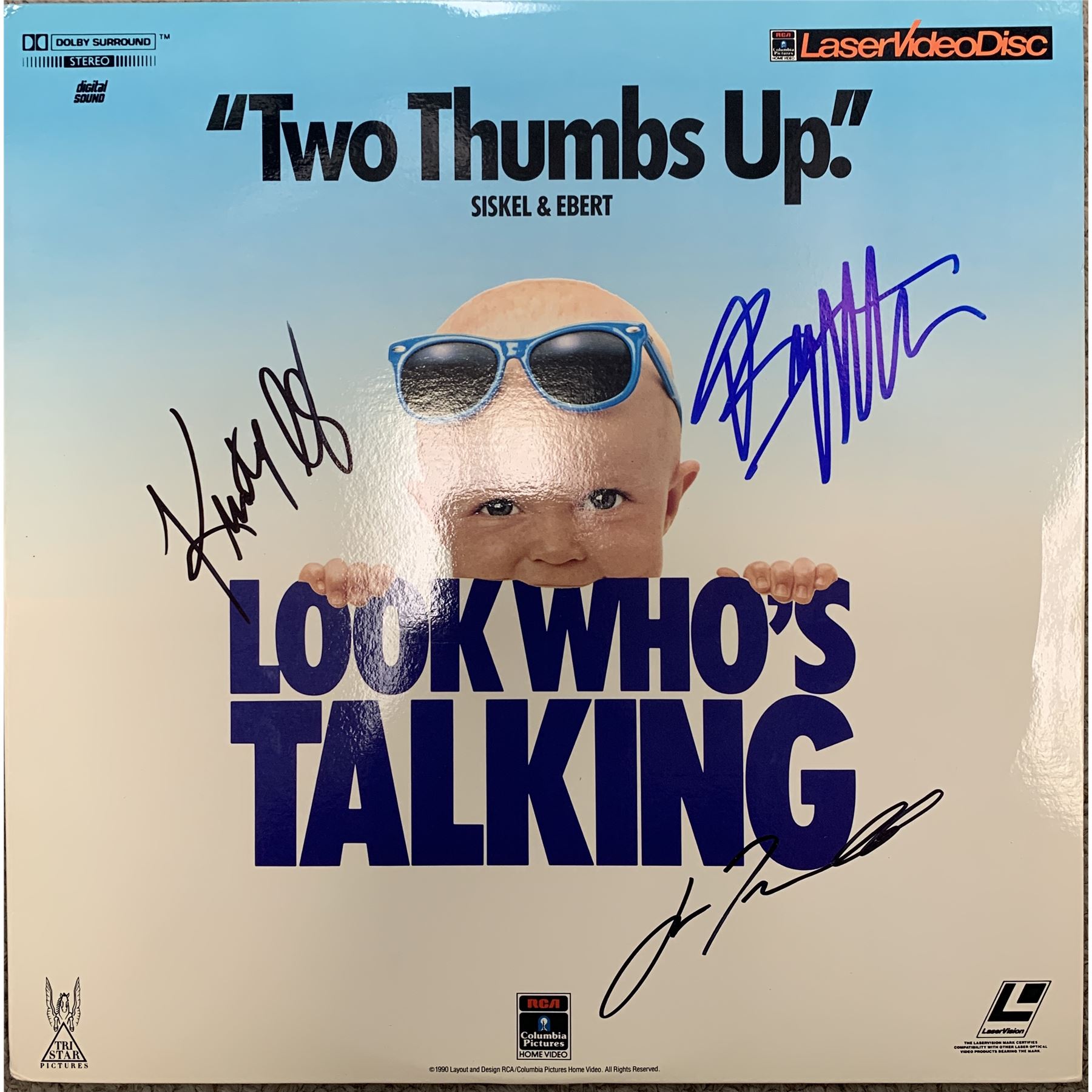 Look Who's Talking cast signed laser disc autographed by John Travolta, Kirstie Alley and Bruce Willis. 12x12 inches