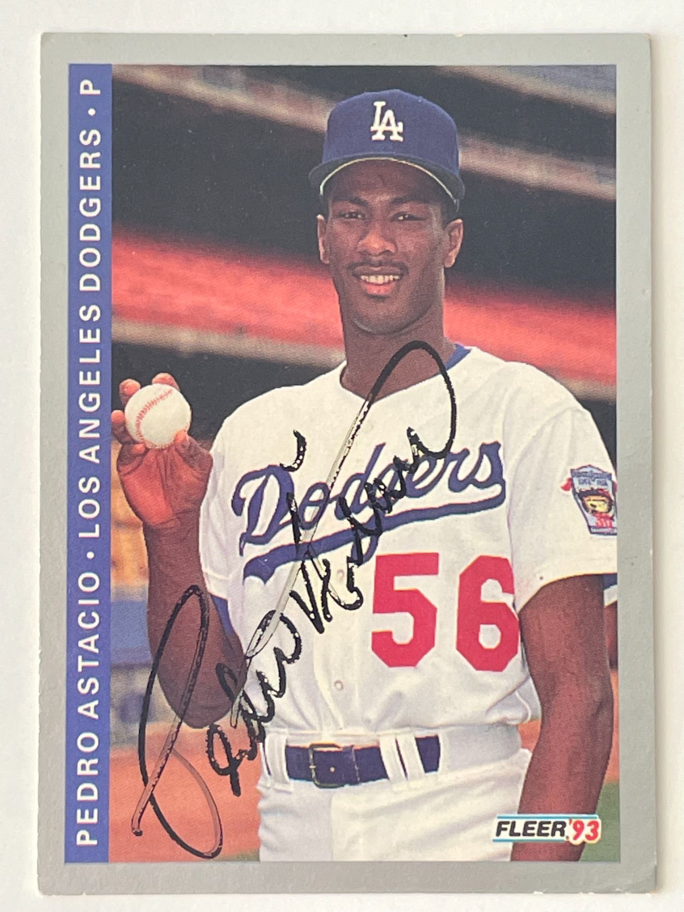 Los Angeles Dodgers Pedro Astacio signed Fleer 1993 trading card. 2x3 inches