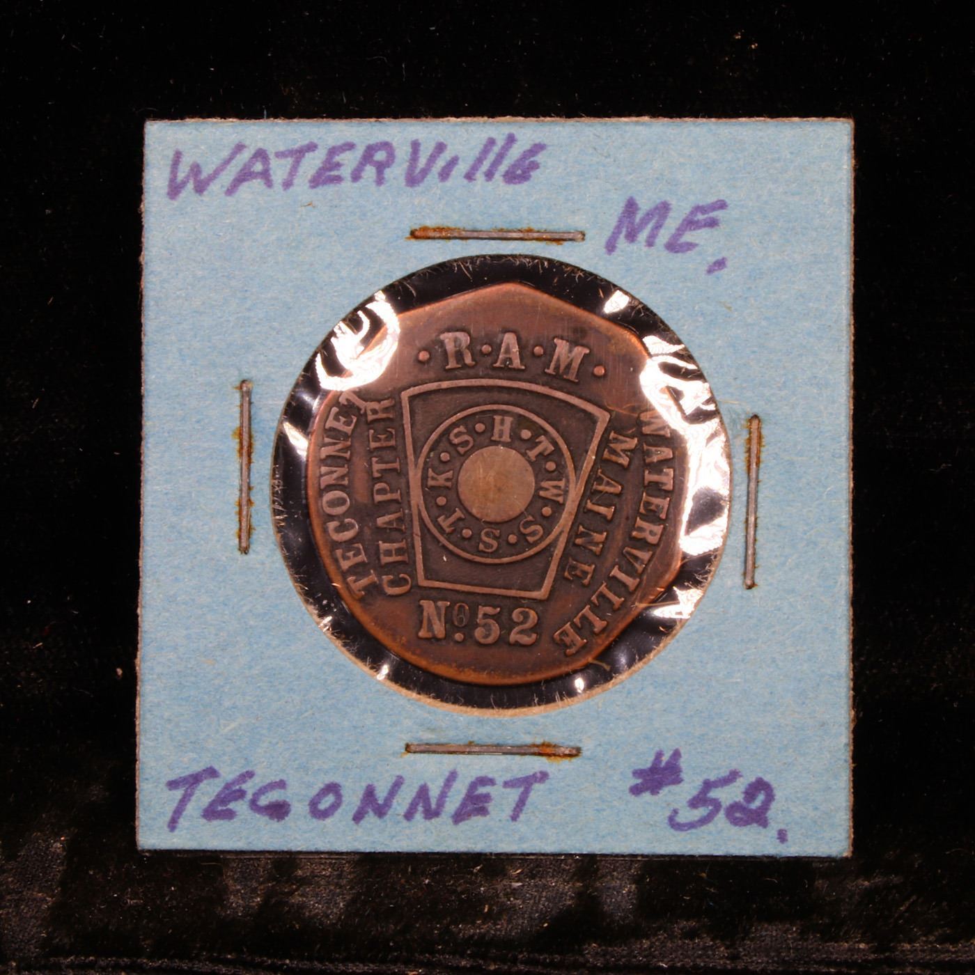 Lot #11 of the 450 Masonic Tokens from The Walter O. Collection. We Recently received a very Large Collection of 450 Masonic Tokens and coins. This collection was one man’s hobby for over 40 years. He collected each and every one with care and attention to detail and variety. Some of them are amazing and incredibly rare and highly sought by collectors and Masons. Here is a Brief Overview : Masonic coins often raise many questions for those looking to better understand the significance of the coins themselves as well as the symbolism represented in their imagery. In fraternal culture as a whole, symbolism has always been a significant part of these organizations’ identity, especially in Freemasonry, as Masonic coins are rich with symbolism, reflecting different events and characteristics of Freemasonry that give them the priceless value they hold. There are several varieties of masonic coins and tokens, and all tokens will fall into one of the following categories: a token celebrating a particular mason, lodge or event; an initiation token showing when a Brother was initiated, passed and raised; and finally the mark mason token (or penny) which signifies a pivotal part of a Mason’s initiation. Because symbolism was so important to fraternal culture, these small coins are rife with meaning. The most ubiquitous representation of the Masons was the letter "G" surrounded by a compass and square, representing the holy geometry of God. Some tokens feature the letters "H.T.W.S.S.T.K.S.," which means "Hiram the Widow's Son Sent to King Solomon," the biblical story that must be acted out to reach the third, or Master's Degree, in Freemasonry. Additionally, many contain either Apron and gloves: These symbols stand for living with a pure heart and to keep one’s hands clean. All-seeing eye: This symbol is designed to remind Masons that God and others always see their thoughts and actions. Ashlars: You may see rough and smooth ashlars on Masonic coins. They are to remind Masons of the contrast between man’s natural state and perfection and the Level: This symbol found on some Masonic coins reminds Masons that everyone is equal before God. We have broken the set up into groups of 5 Tokens in each lot. We have put 5 Lots per night over the 18 Nights of the Spring Auctions.