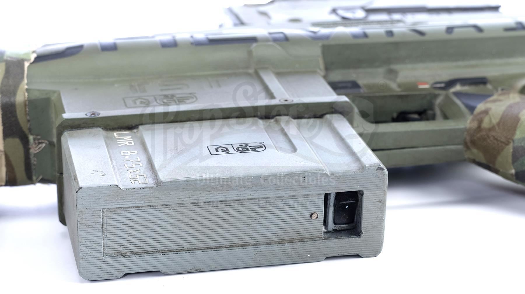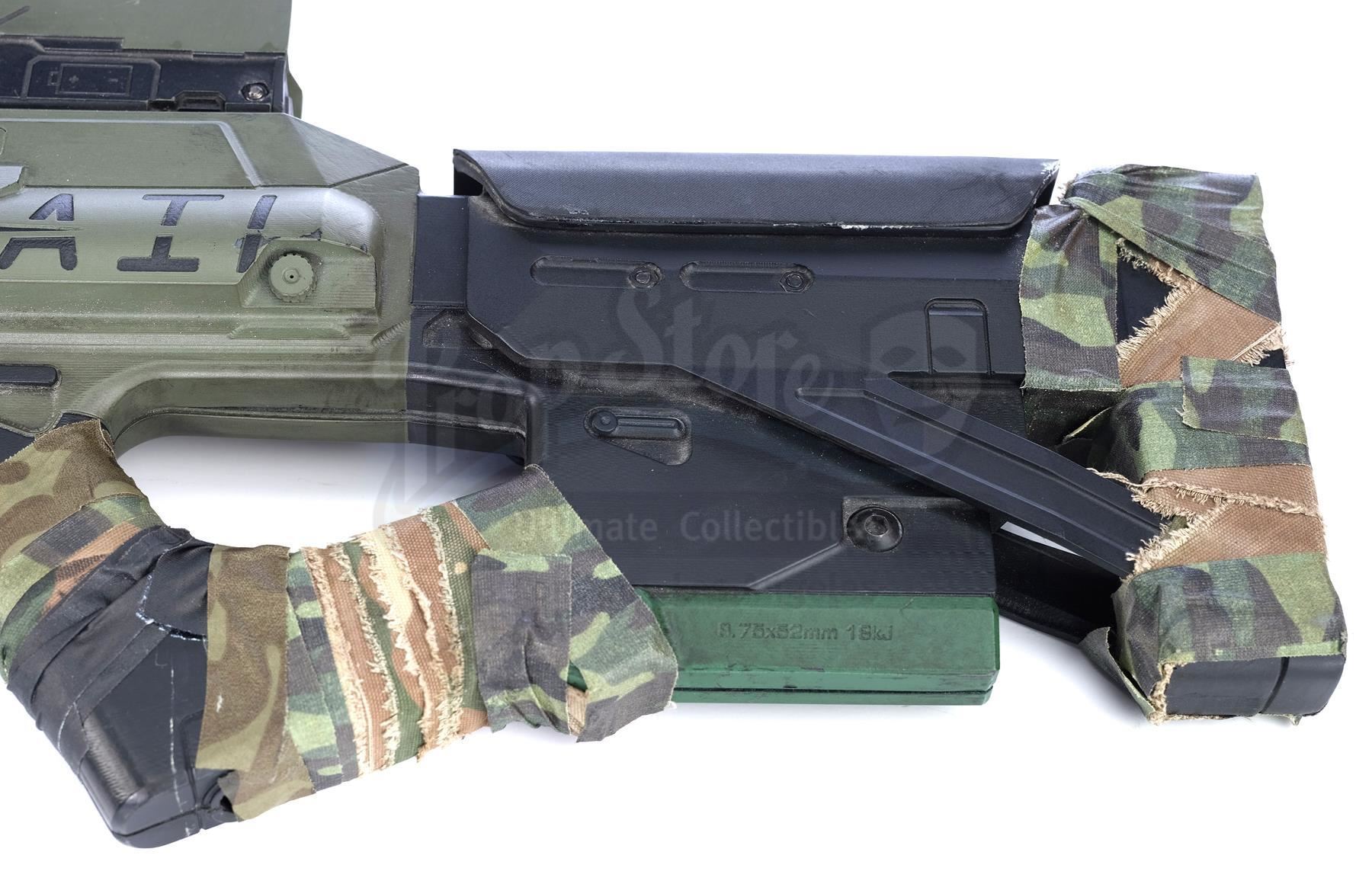 This futuristic rifle is in good overall condition and exhibits various signs of use during production, including scuffed paint throughout. Dimensions: 39" x 11" x 3" (99 cm x 28 cm x 7.75 cm)
