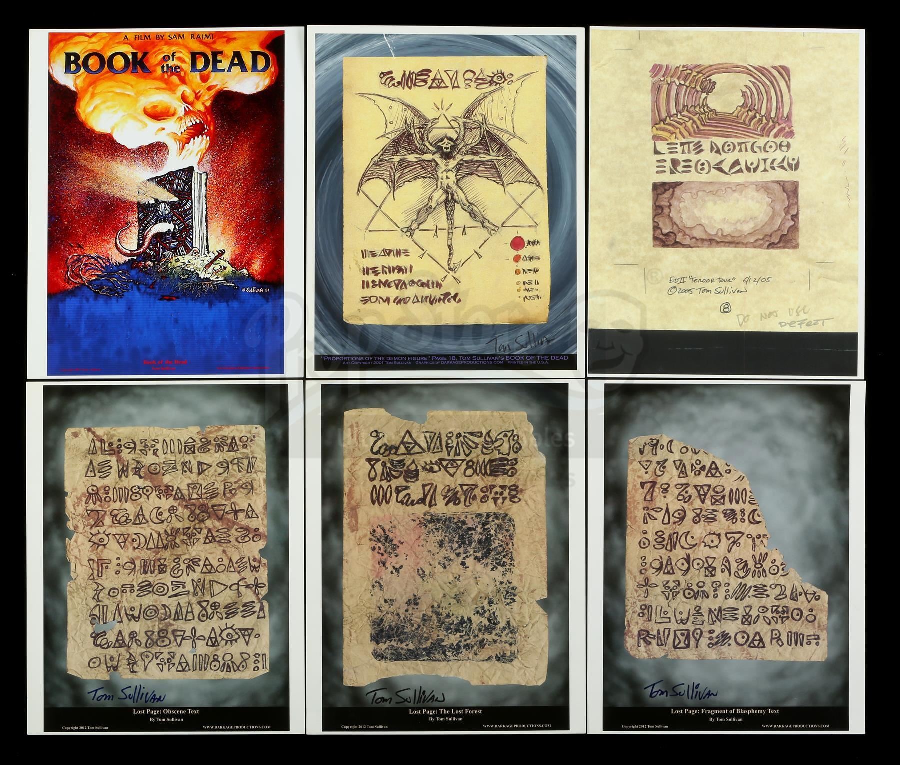 A set of commemorative Necronomicon prints from original prop creator Tom Sullivan made for Sam Raimi's The Evil Dead and its sequel, Evil Dead II. The prop Necronomicon, whose pages unleashed evil flesh-eaters when read by Ash Williams (Bruce Campbell) and his friends, was created by special effects artist and animator Sullivan.
