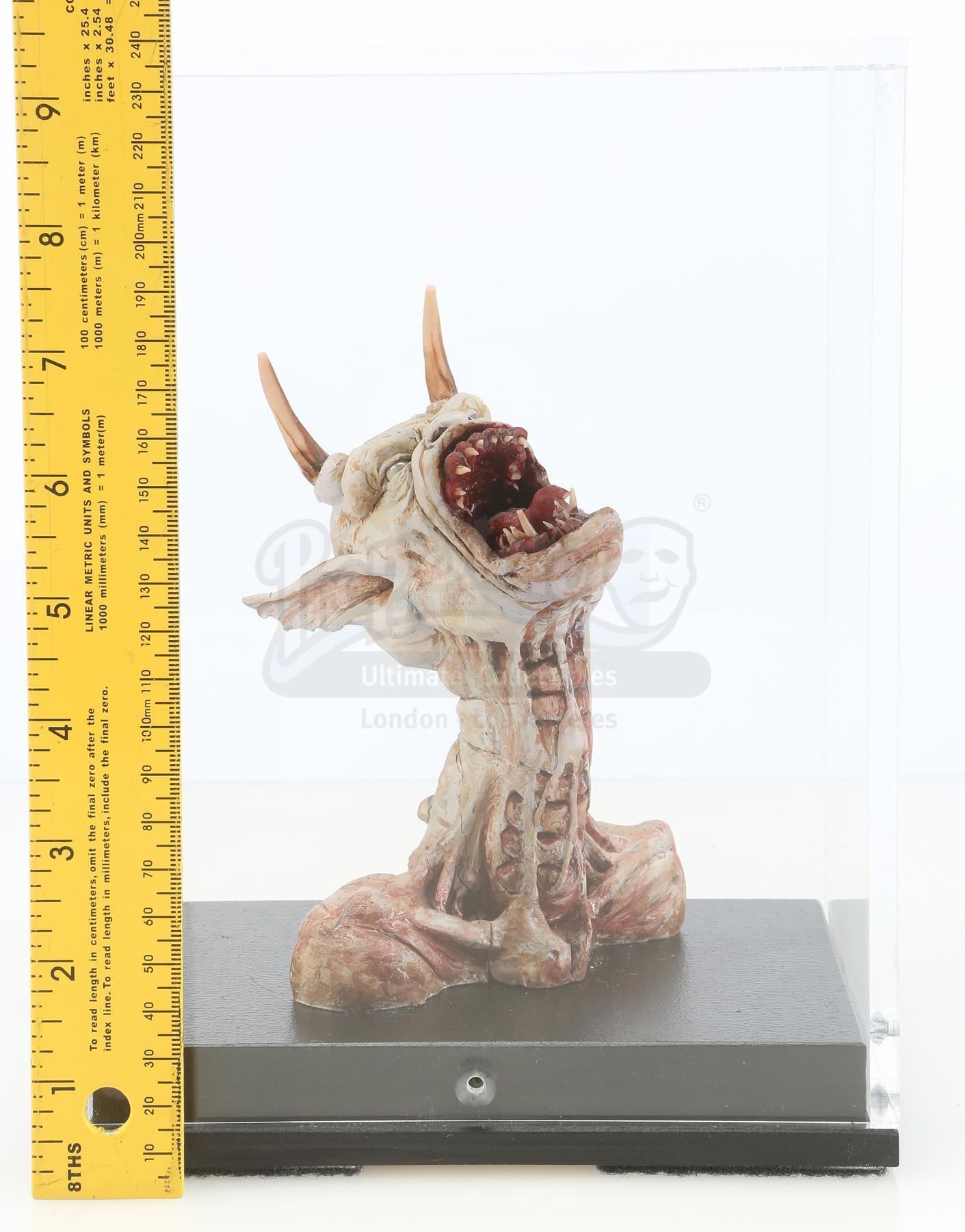 A Sardo Numspa (Charles Dance) demon maquette from Michael Ritchie's comedy fantasy The Golden Child. The evil sorcerer Sardo unveiled his true demon form to prevent Chandler Jarrell (Eddie Murphy) from rescuing the Golden Child (J.L. Reate). This lot comes from the film's Demon Supervisor, Phil Tippett, who designed the puppets used in the climactic sequence.