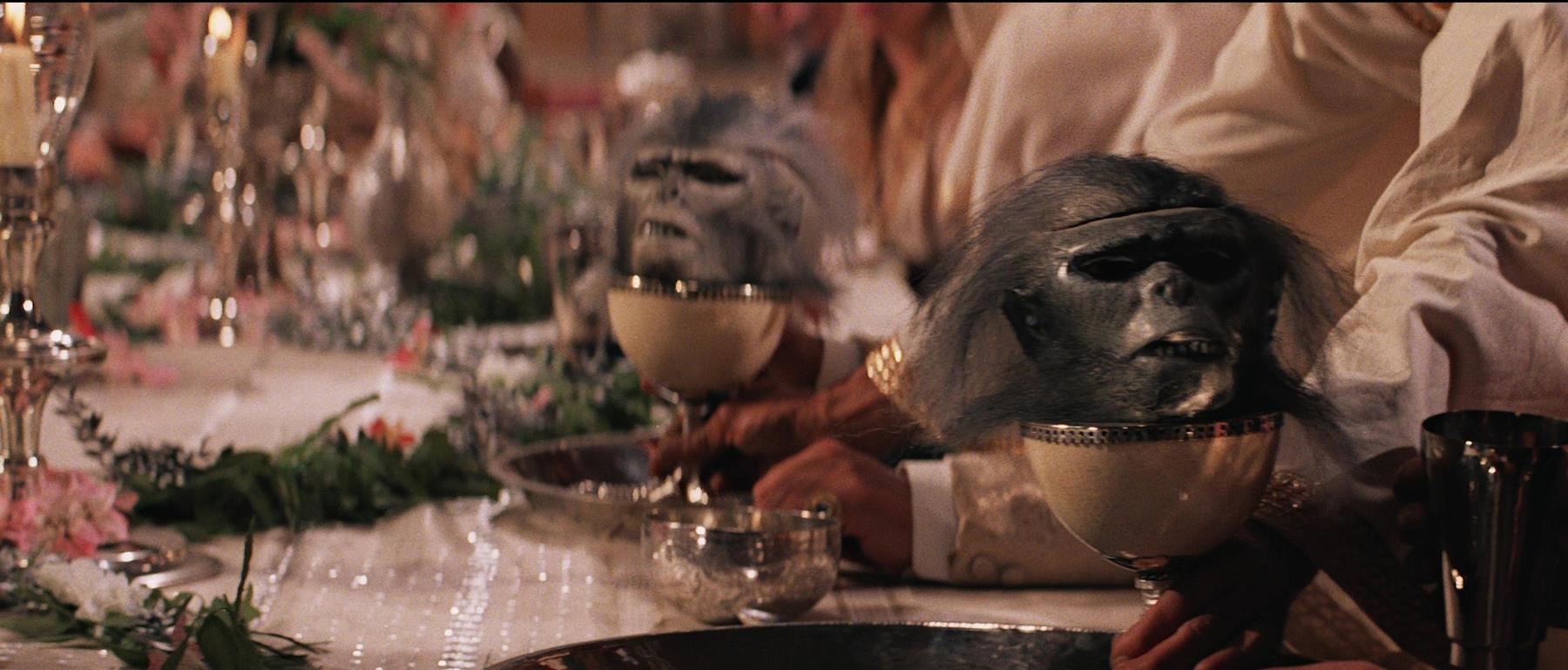 A chilled monkey brain head from Steven Spielberg's action-adventure sequel Indiana Jones and the Temple of Doom. Willie Scott (Kate Capshaw) and her fellow dinner guests were served chilled monkey brains as dessert after the main course of bugs and snakes.