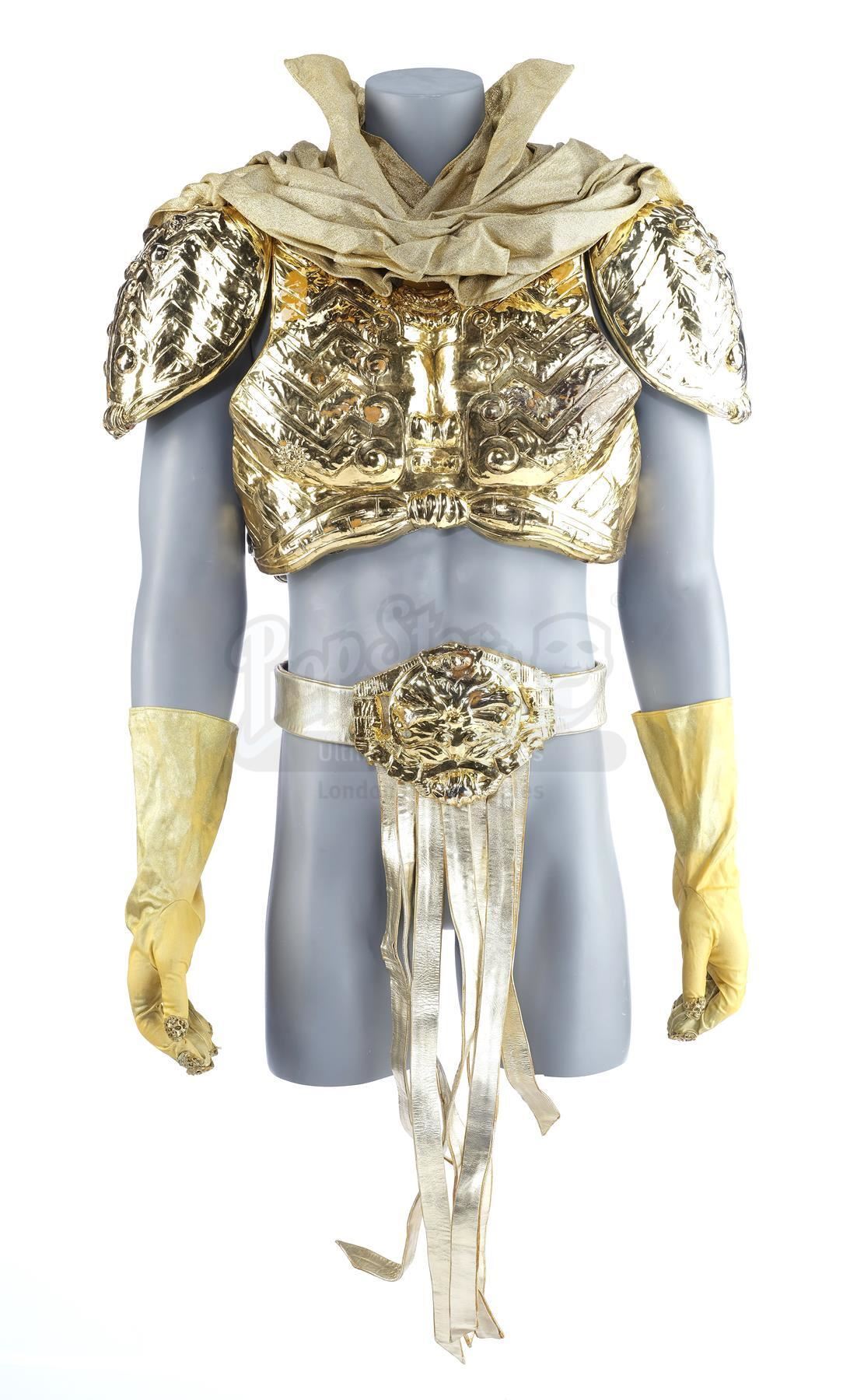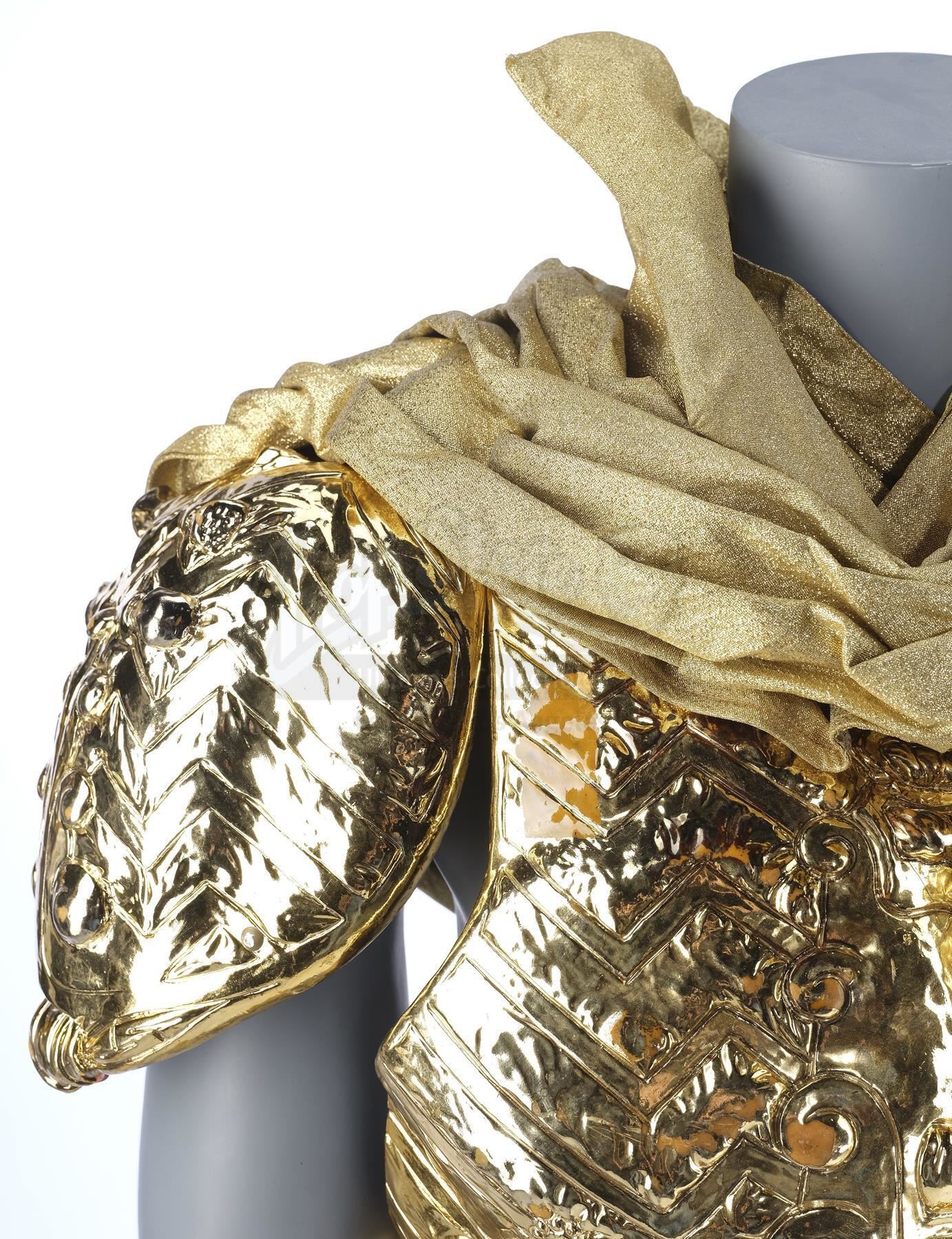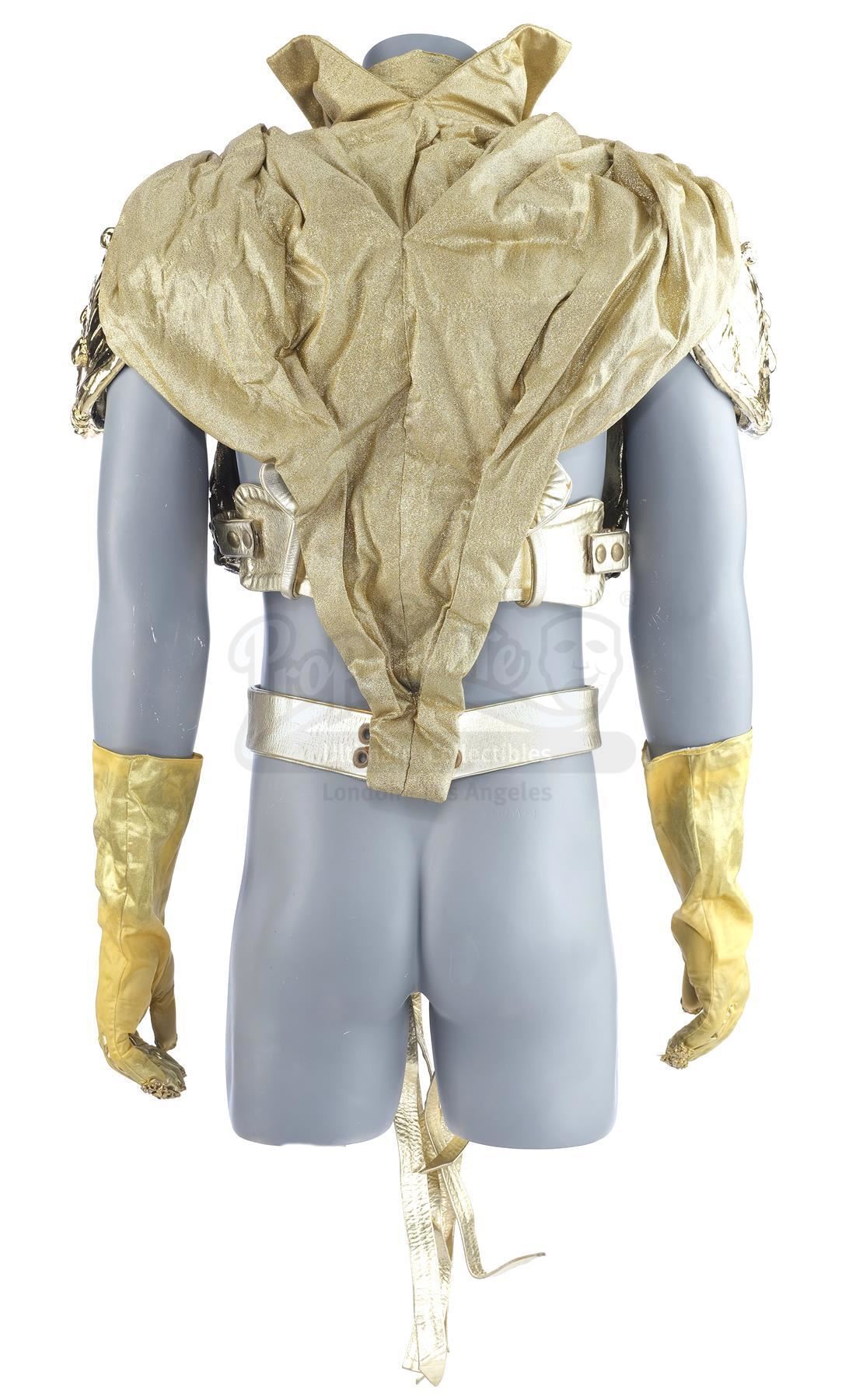 Skeletor's (Frank Langella) gold armor from Gary Goddard's fantasy adventure Masters of the Universe. After taking control of Castle Grayskull and absorbing the powers of the universe, Skeletor (Frank Langella) transforms himself into a god-like figure, clad in golden armor.