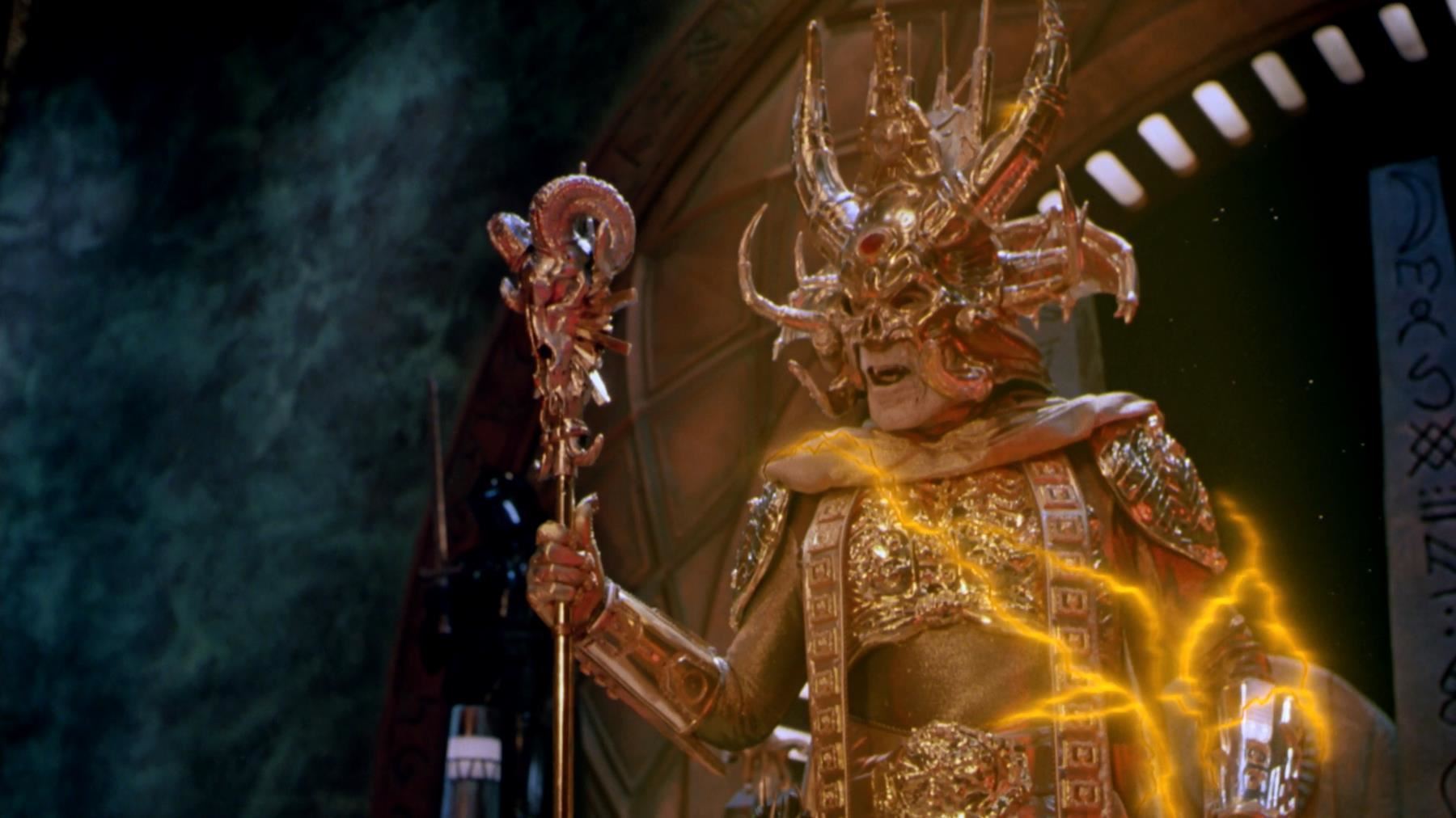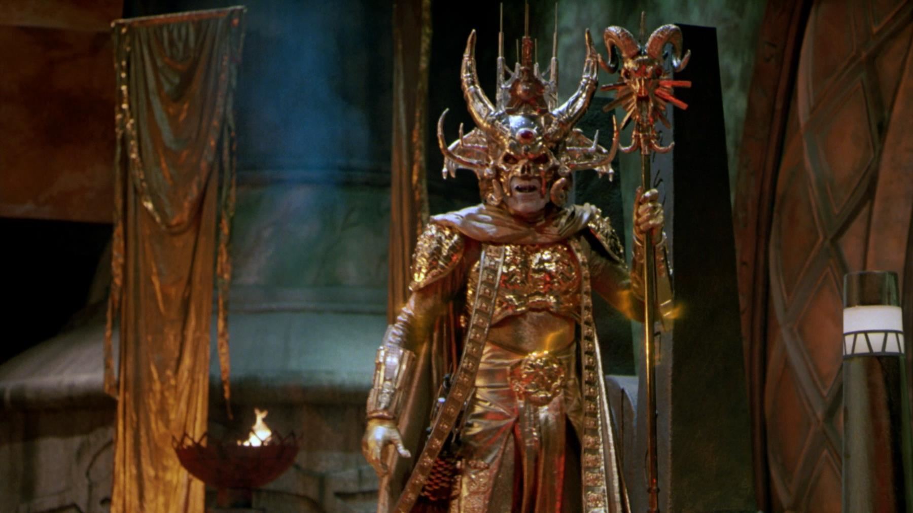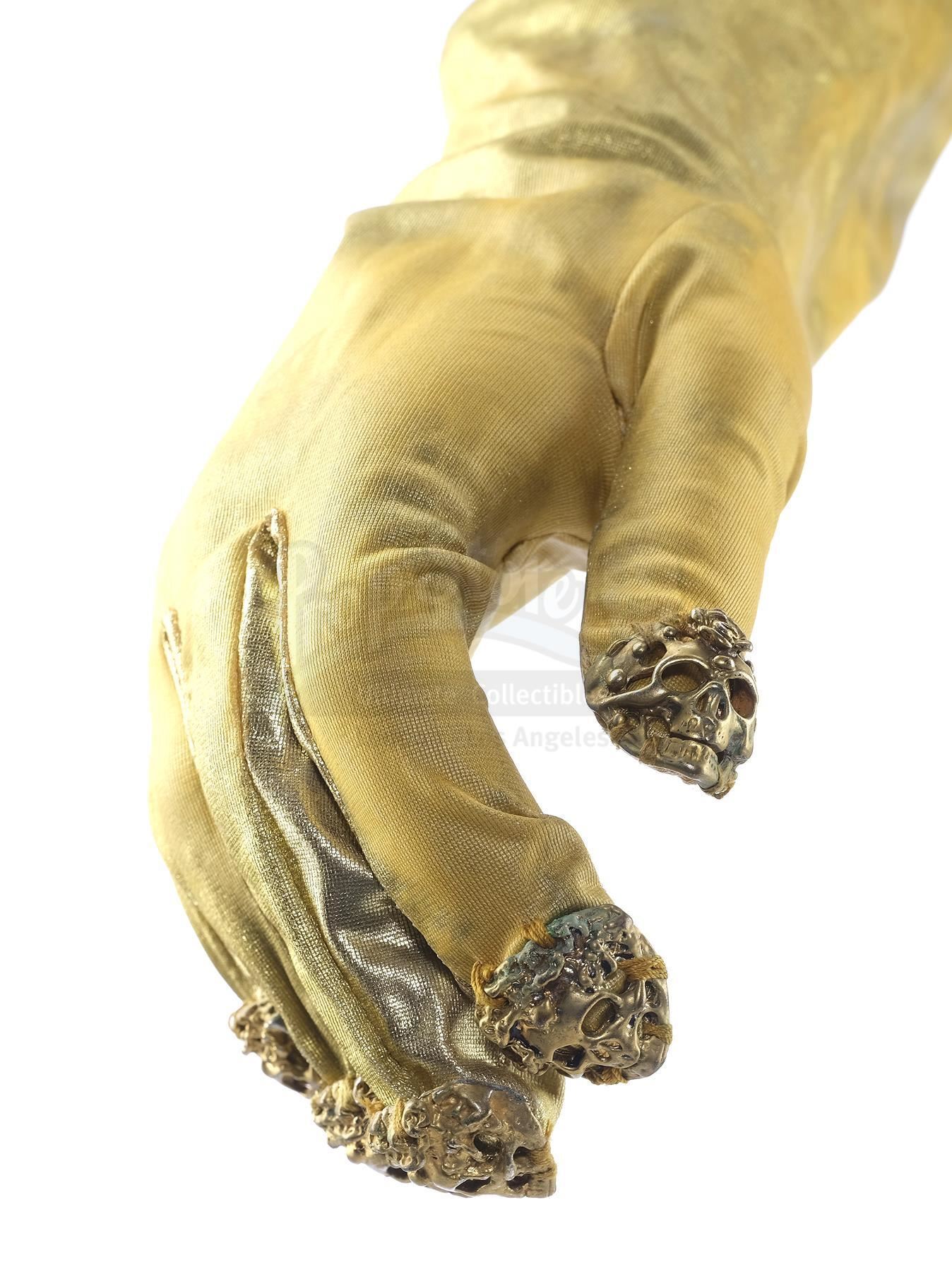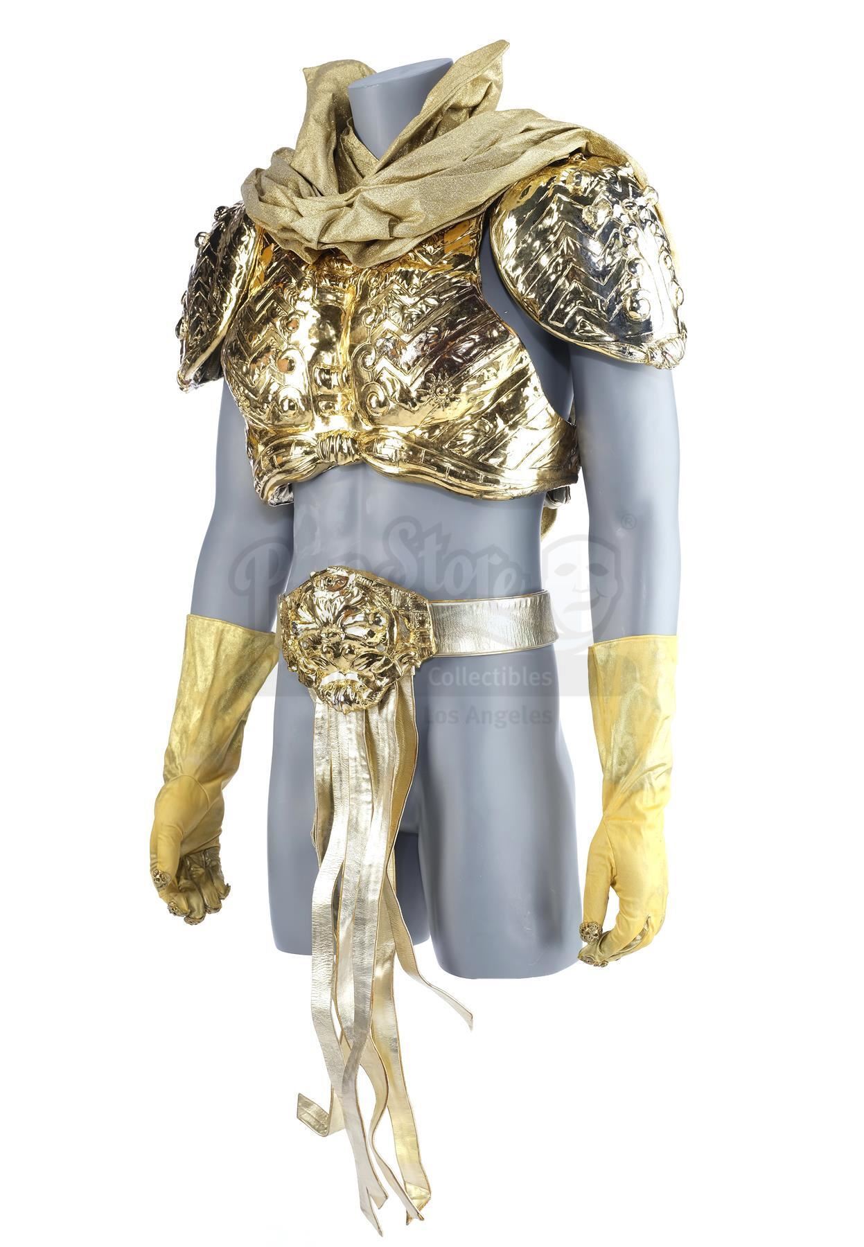 Skeletor's (Frank Langella) gold armor from Gary Goddard's fantasy adventure Masters of the Universe. After taking control of Castle Grayskull and absorbing the powers of the universe, Skeletor (Frank Langella) transforms himself into a god-like figure, clad in golden armor.