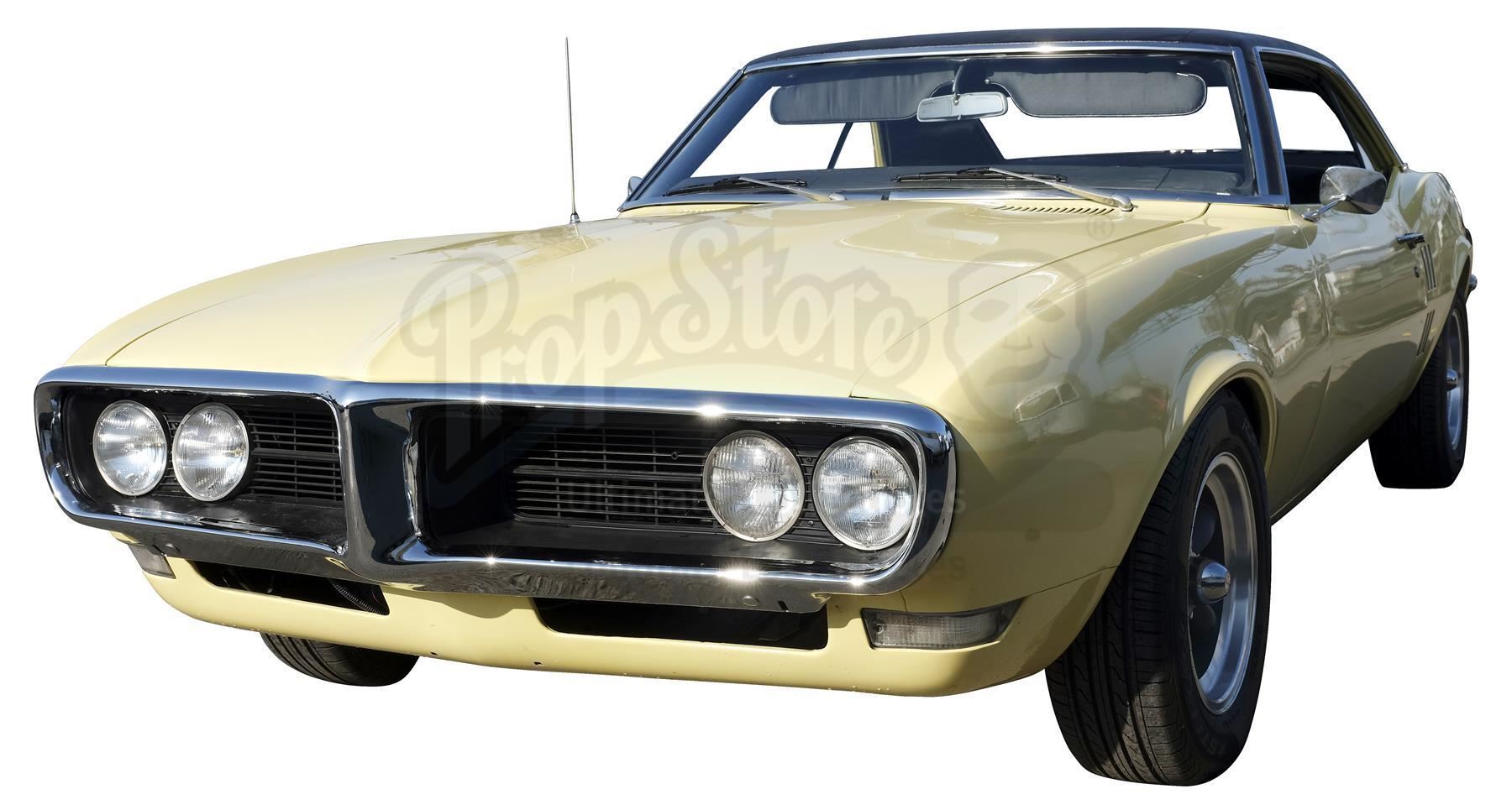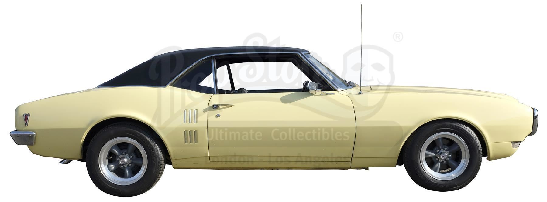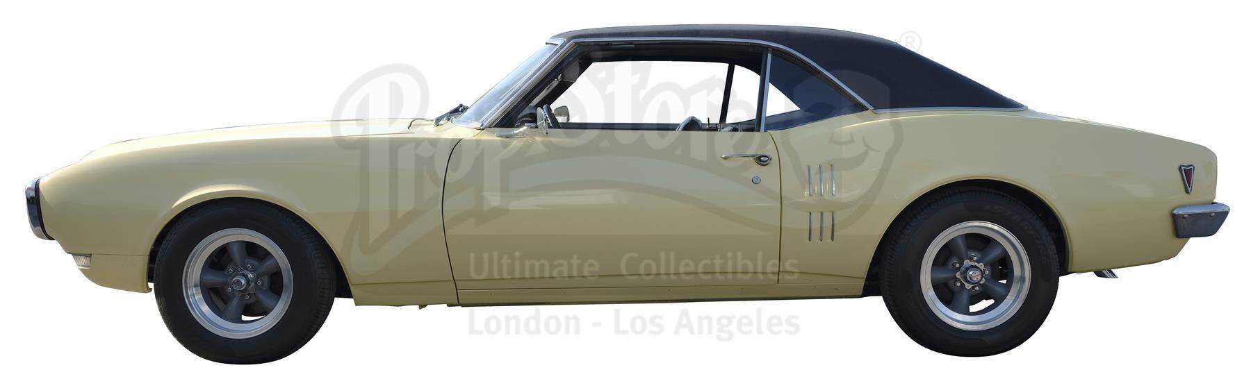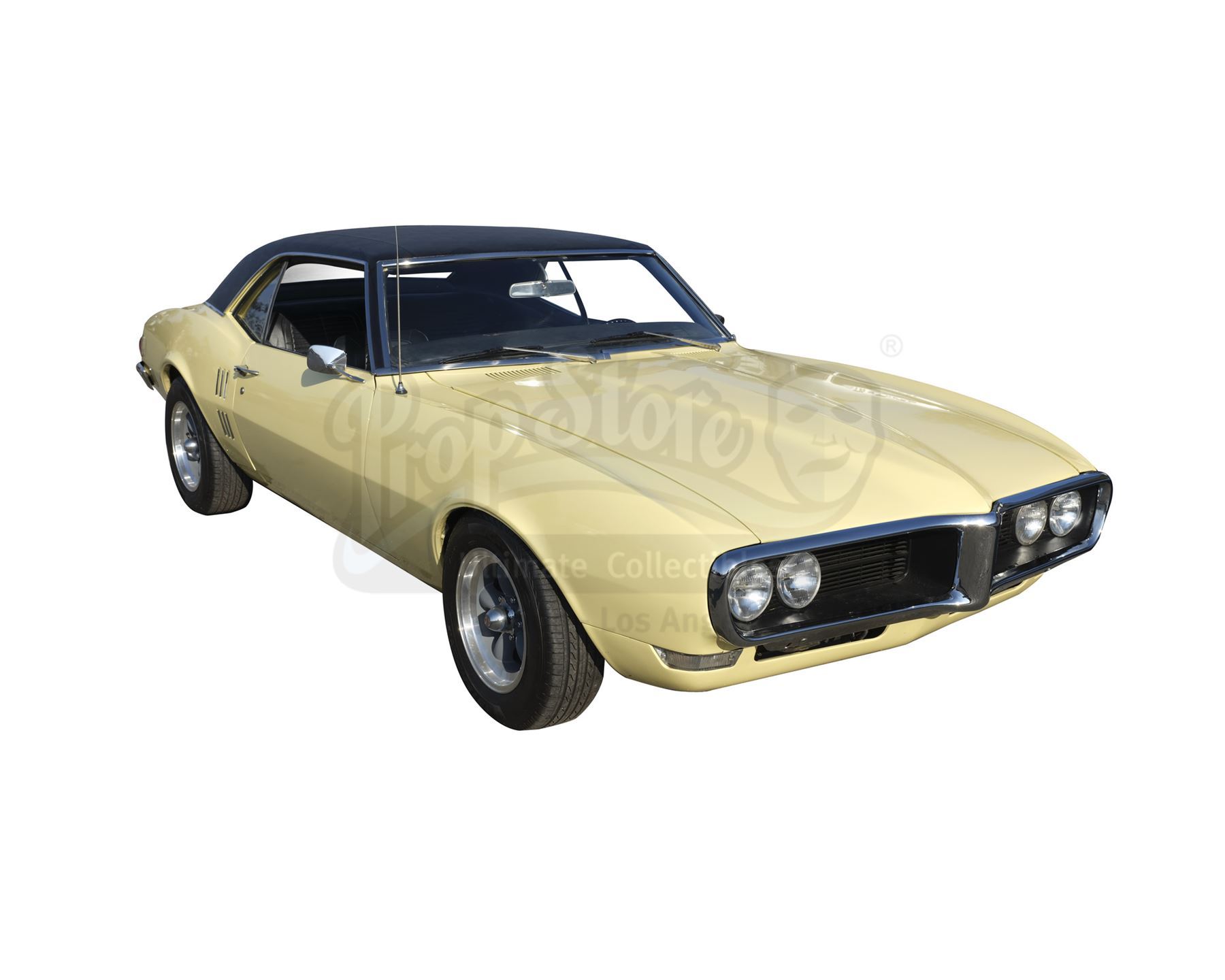 Abigail Folger's (Samantha Robinson) yellow Pontiac Firebird from Quentin Tarantino's Academy Award-winning comedy Once Upon a Time...in Hollywood. Folger, the heiress to the Folger Coffee Company fortune, drove her pregnant friend Sharon Tate (Margot Robbie) to the El Coyote restaurant in her Firebird before returning Tate to the house she shared with Roman Polanski (Rafal Zawierucha).