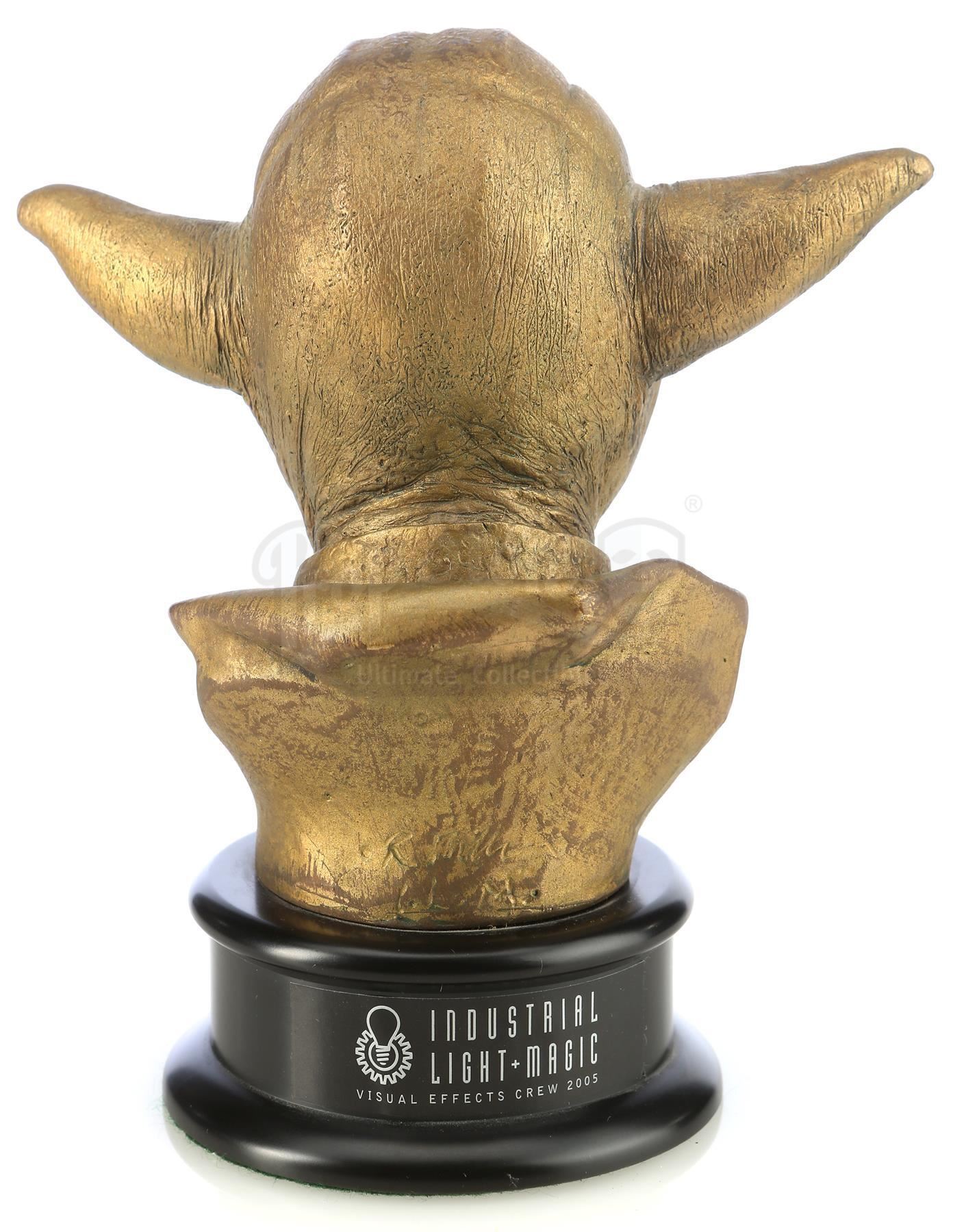 Industrial Light & Magic (ILM) Chewbacca and Yoda statue crew gifts from George Lucas' Star Wars: Revenge of the Sith. Chewbacca and Yoda busts were given to select ILM staff as holiday gifts to celebrate the 2005 release of the film.