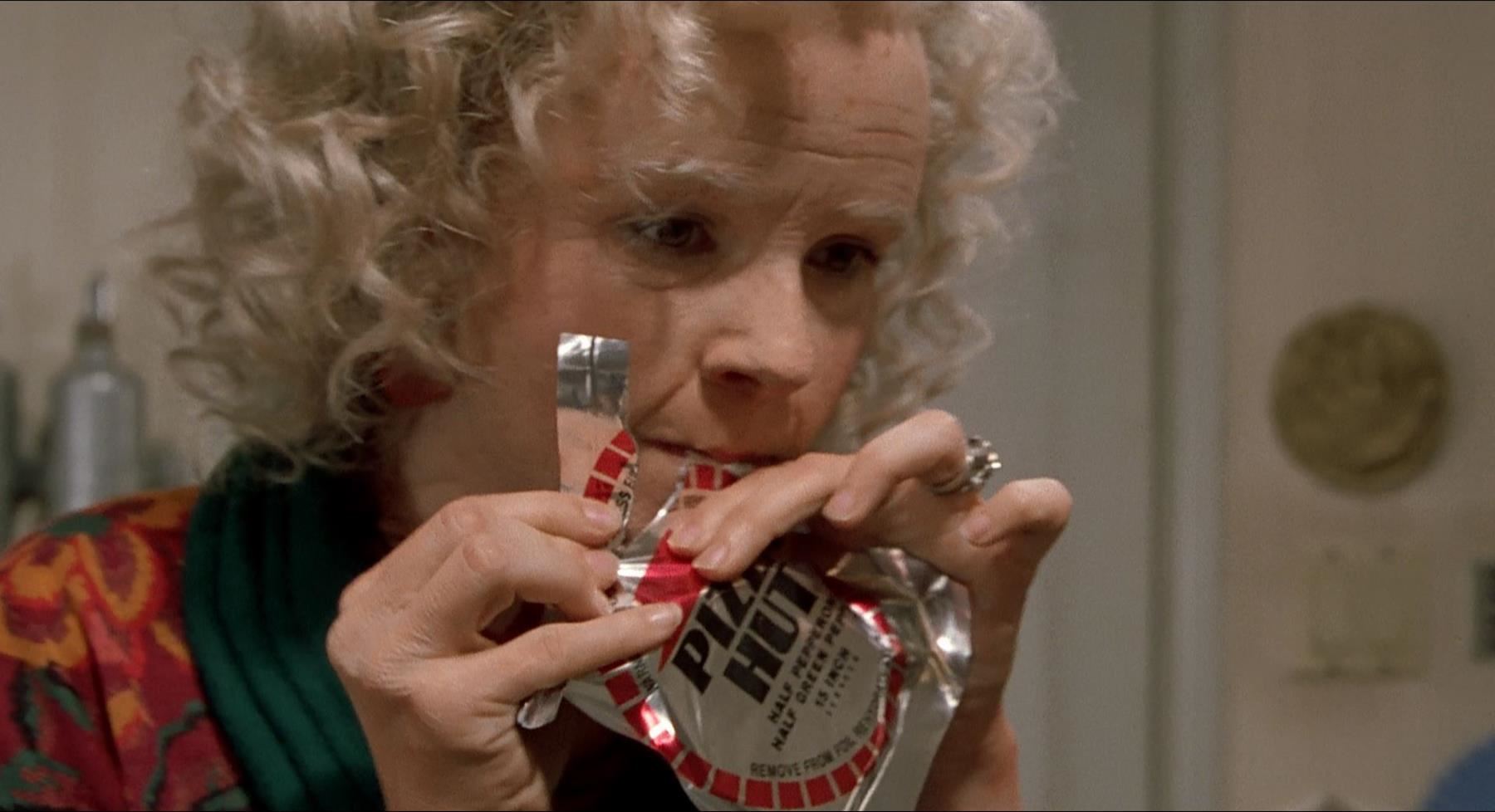 A McFly family's dehydrated Pizza Hut wrapper from Robert Zemeckis' sci-fi adventure sequel Back to the Future Part II. Lorraine McFly (Lea Thompson) brought a bag of rehydratable pizzas to family dinner at her son Marty's (Michael J. Fox) house.