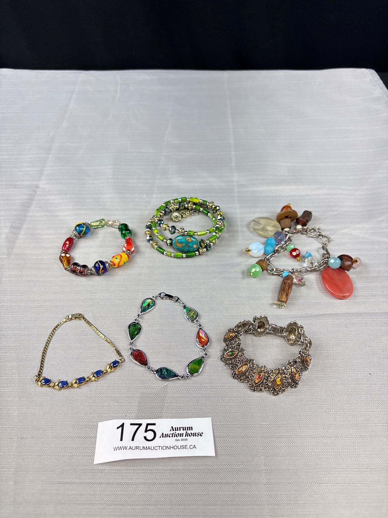 Lot Of 6 Bracelet Lot - Assorted Beads, Glass, Lampwork, Gemstones And More